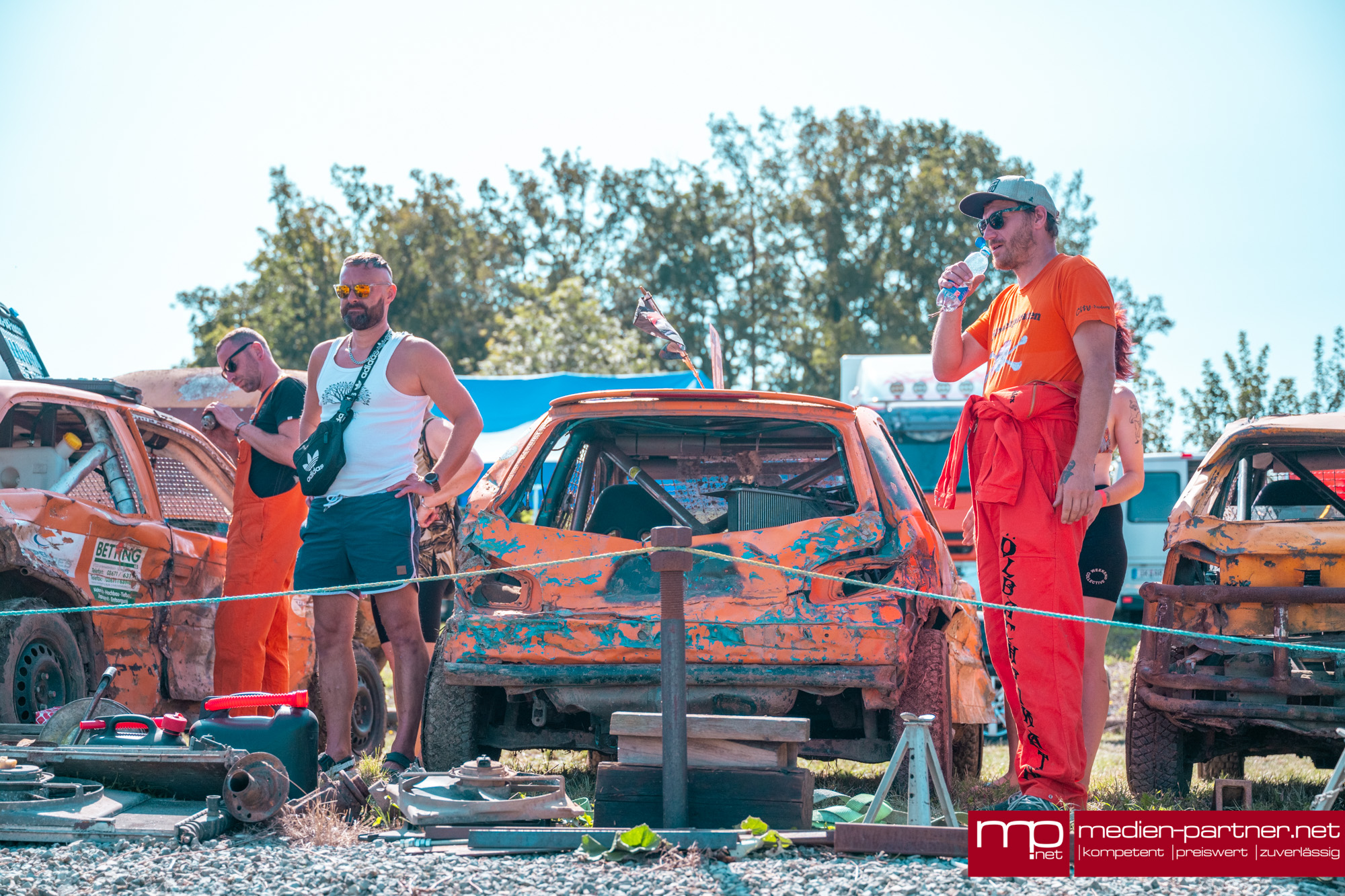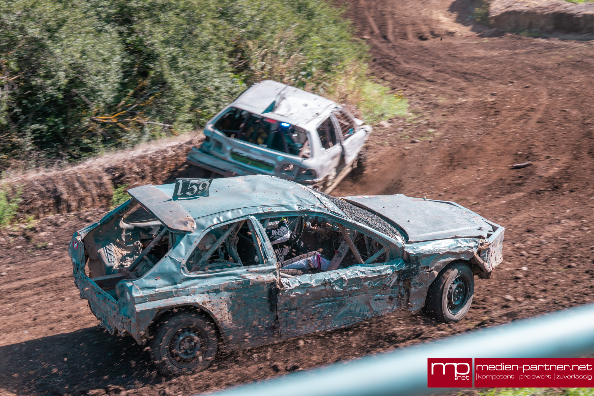 In fünf Klassen starteten die Kontrahenten und boten dem Publikum allerhand Sehenswertes. Kollisionen, Abflüge von der Strecke oder gar Überschläge – es war alles dabei. Und wenn dabei mal etwas am Boliden nachgab oder den Dienst versagte, legten die Mechaniker im Fahrerlager gleich Hand an und brachten die Kisten wieder zum Laufen. Dabei ging es nicht immer zimperlich zur Sache.