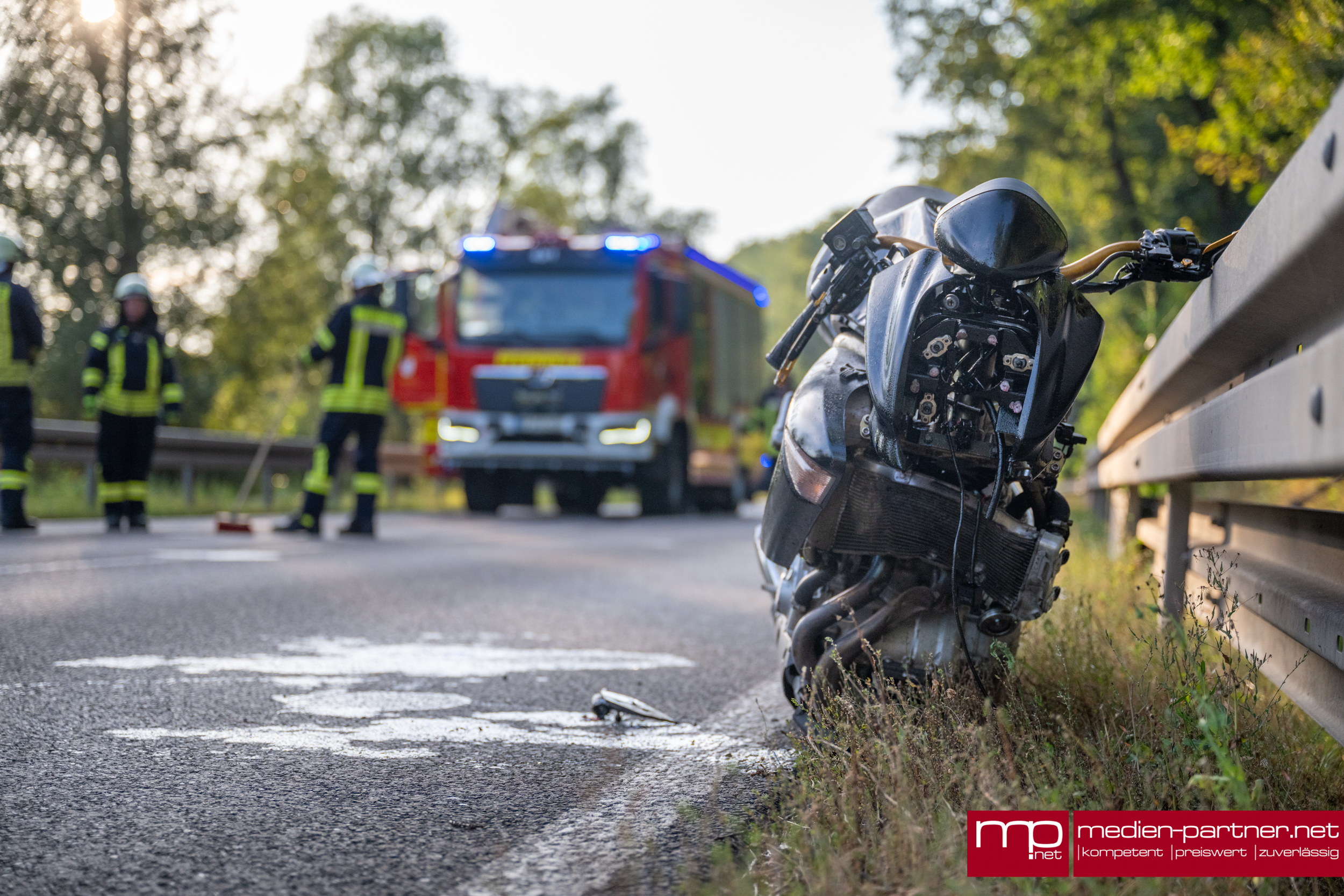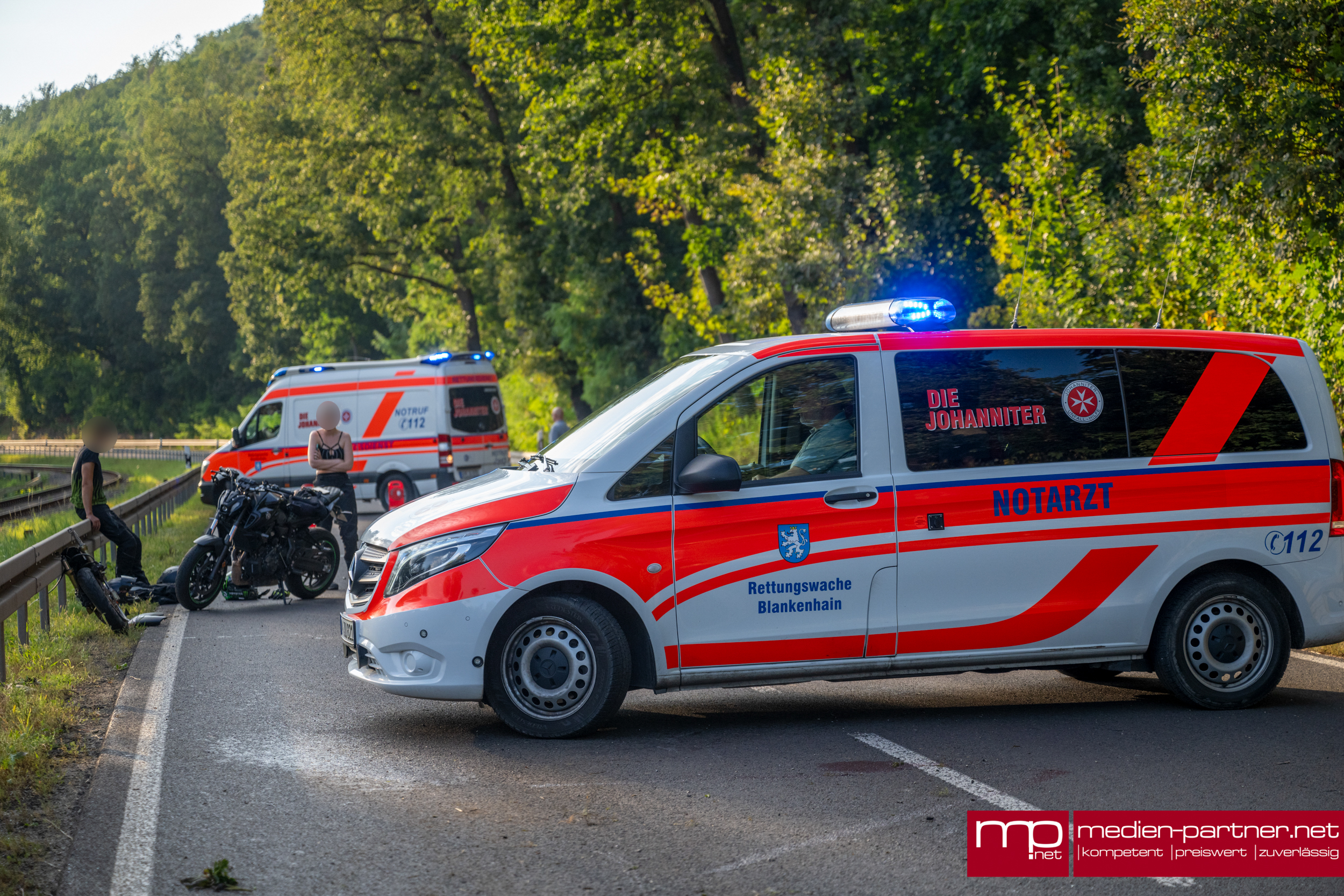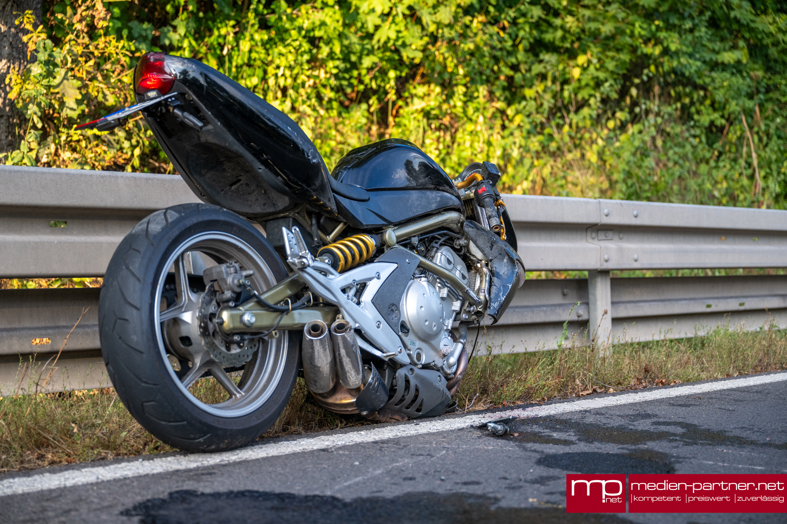 Es sollte eine schöne Ausfahrt mit den Motorrädern werden, doch für einen der beiden Biker endete der Nachmittag im Krankenhaus. Gegen 18:10 Uhr waren die zwei Motorradfahrer am Dienstagabend zwischen Tannroda und Kranichfeld unterwegs, als einer der beiden in einer Rechtskurve, kurz vor der Zwei-Burgen-Stadt in die Leitplanke krachte. Die Wucht des Einschlages muss heftig gewesen sein, da das gesamte Vorderrad bis zum Lenker abgerissen wurde.