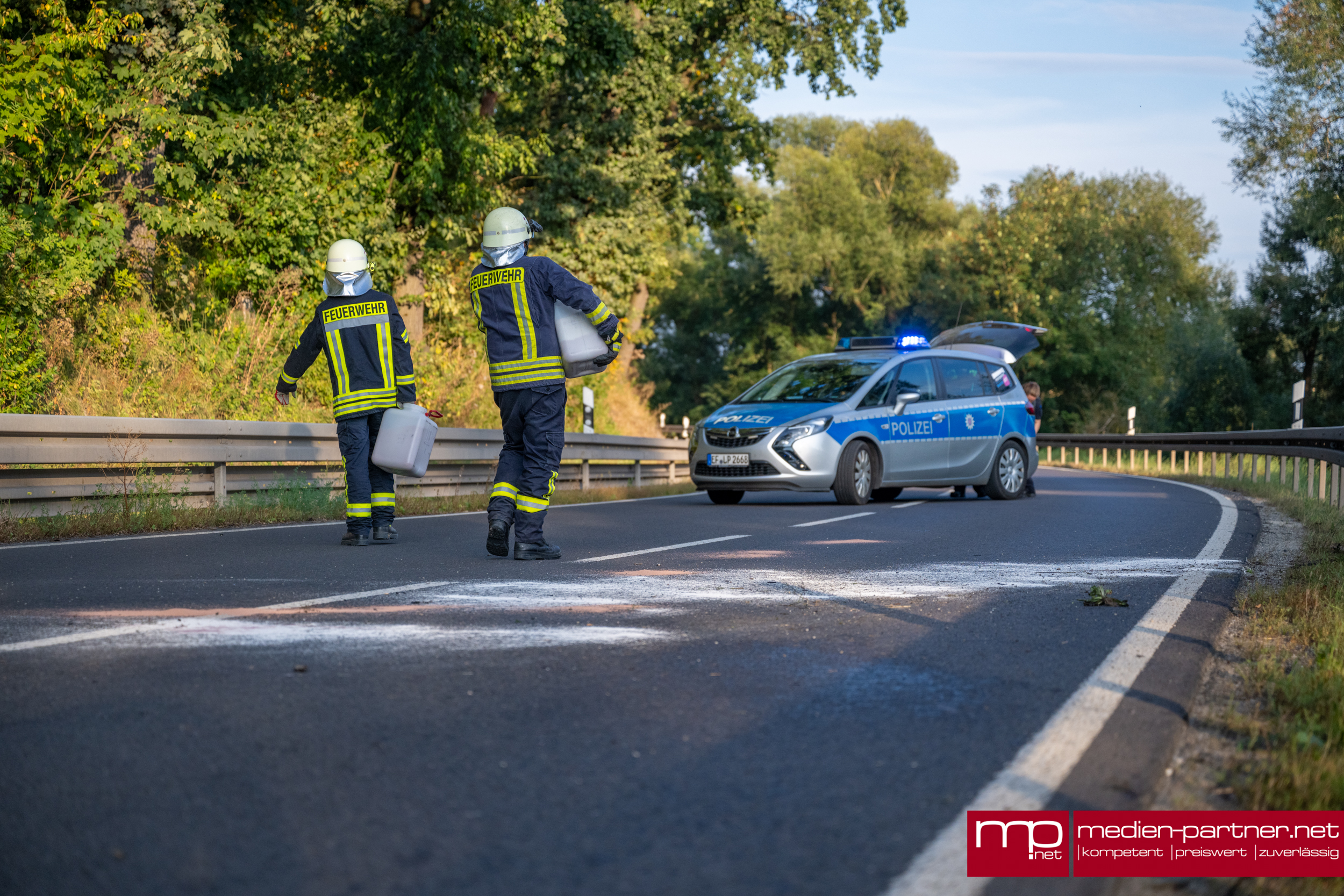 Das Motorrad wurde durch einen Abschleppdienst geborgen. Die Freiwillige Feuerwehr Kranichfeld reinigte die Unfallstelle. Nach gut einer Stunde konnte die Vollsperrung der Landstraße 3087 wieder aufgehoben werden.