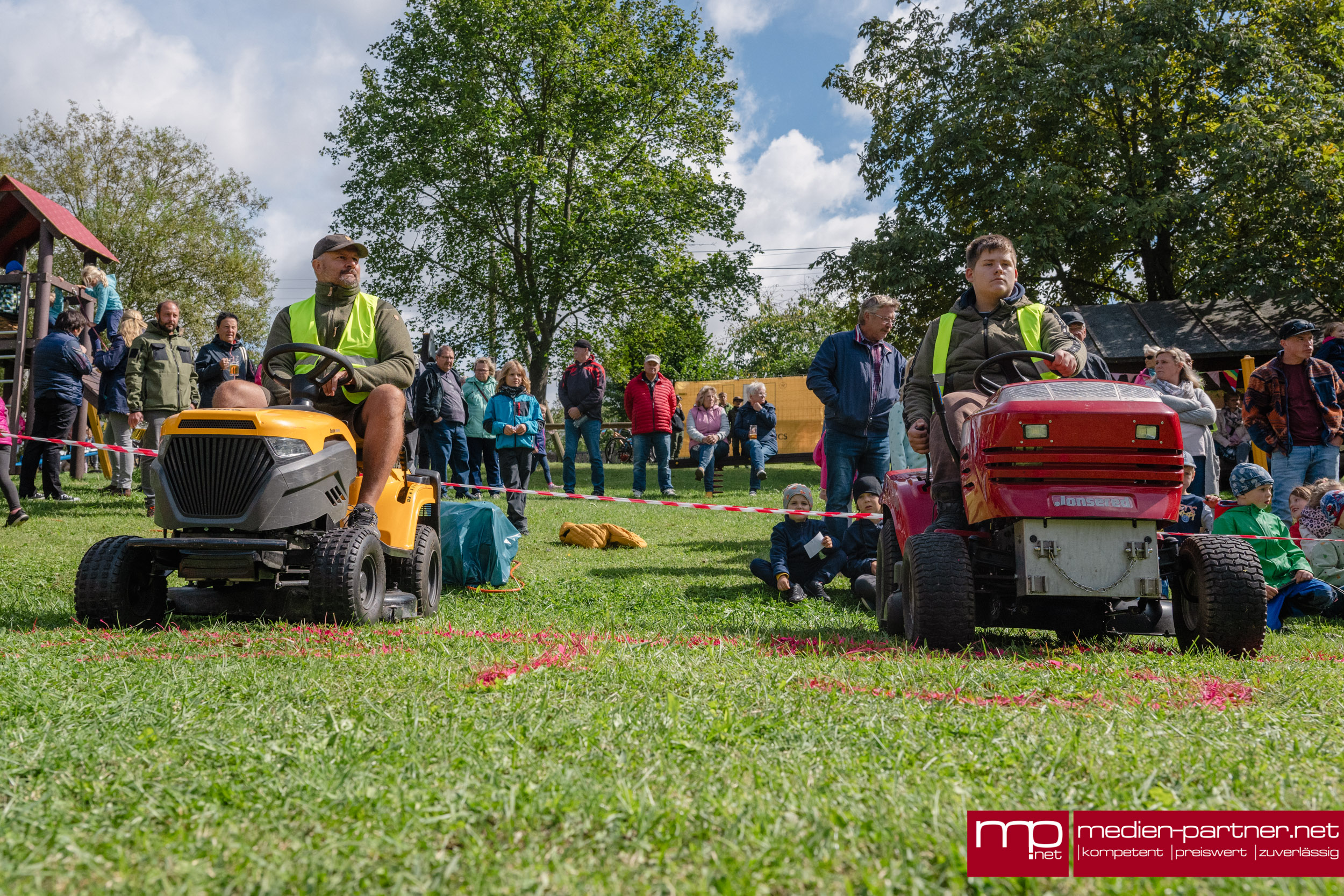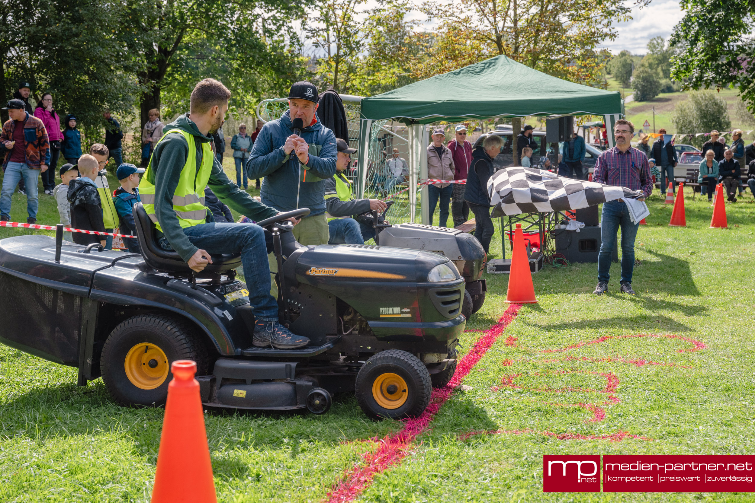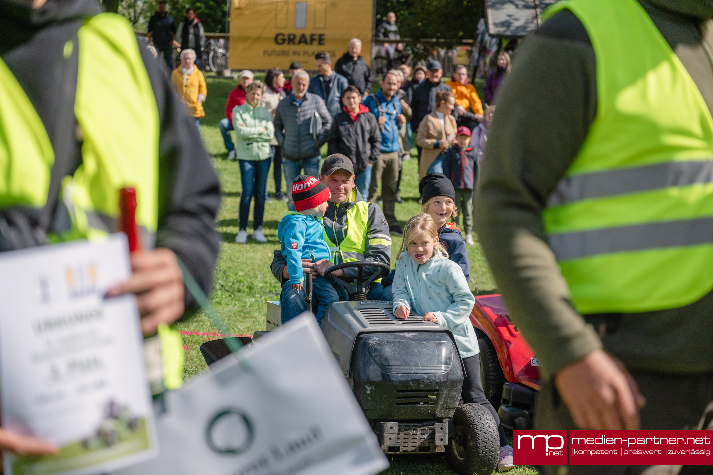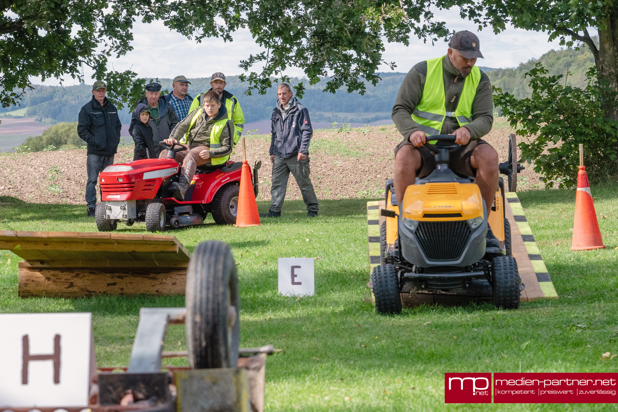 Das Rennen begann mit einem spannenden Geschicklichkeitsparcours. Die Piloten mussten sich beim Dosenwerfen, Slalomfahren oder Golfspielen beweisen, und an einem alten Anhänger mussten sie sogar noch ein Rad wechseln. Schnelligkeit allein reichte hier nicht aus – Präzision und Nervenstärke waren gefragt. Meyer führte bis kurz vor dem Ende souverän, doch als das entscheidende Wettrennen der Minitraktoren begann, spielte ihm die Technik einen Streich.