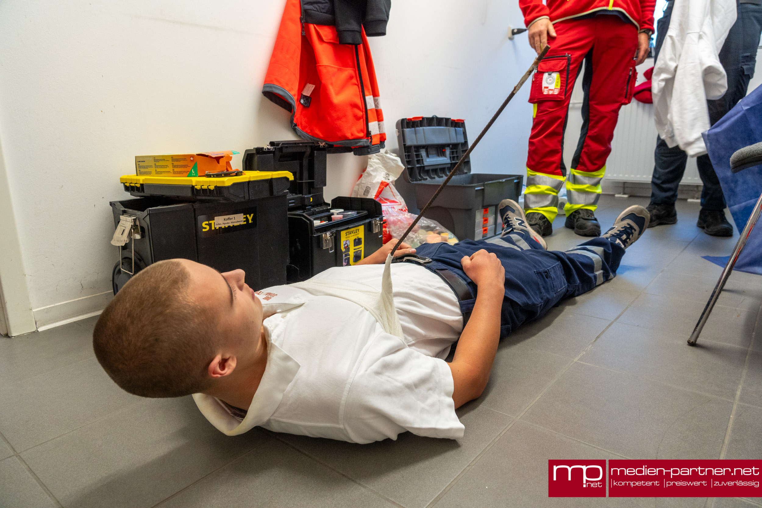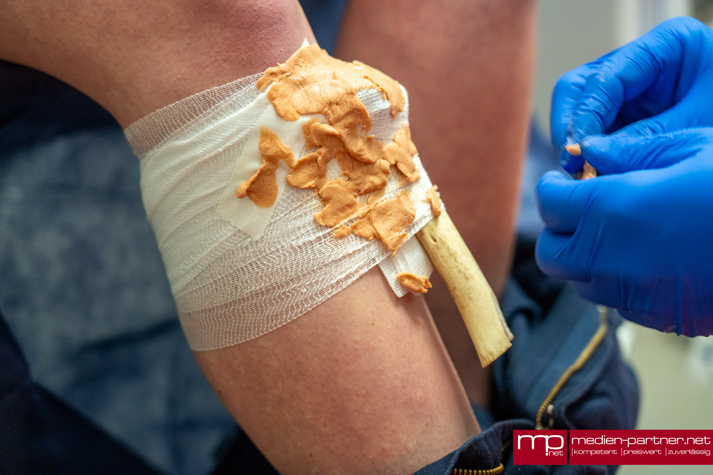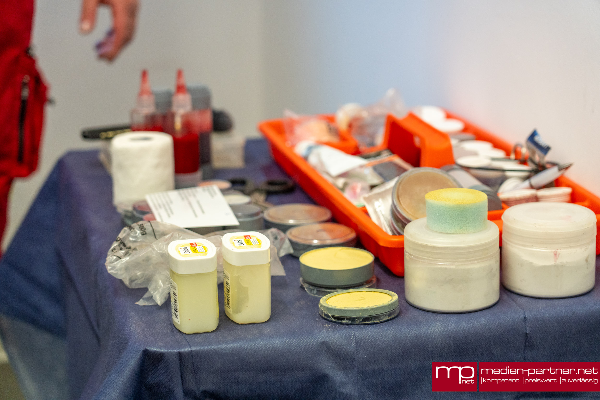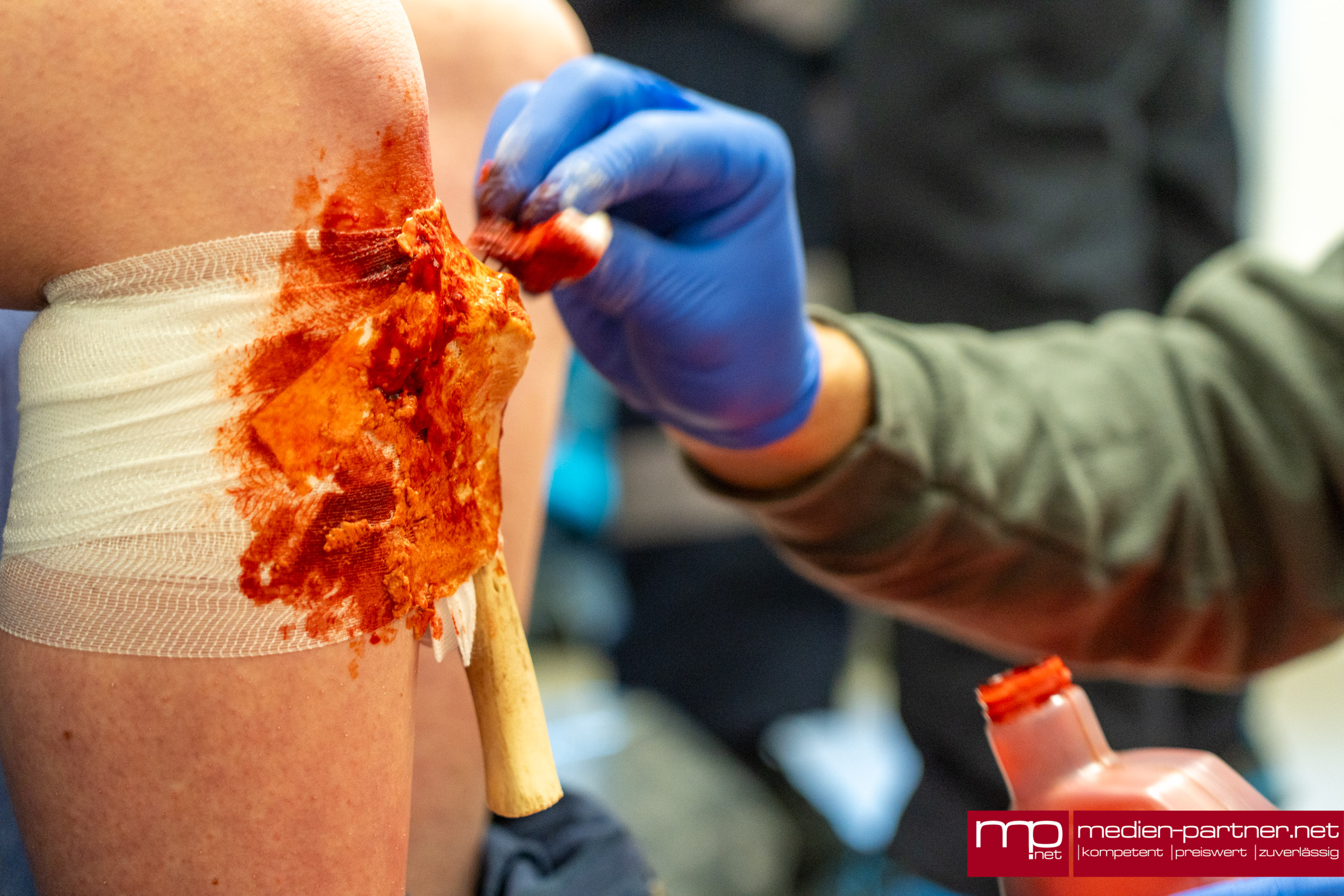 Ein echter Nervenkitzel war der Einsatz des Rettungshubschraubers „Christoph Thüringen“, der die Übung so realistisch wie möglich gestaltete. Besonders spannend für die zahlreichen Auszubildenden im Rettungsdienst: Sie konnten hautnah miterleben, wie eine Großschadenslage unter realen Bedingungen abläuft. Die Darsteller der Verletzten waren professionell geschminkt, ihre Wunden sahen täuschend echt aus – eine zusätzliche Herausforderung für die Rettungskräfte.