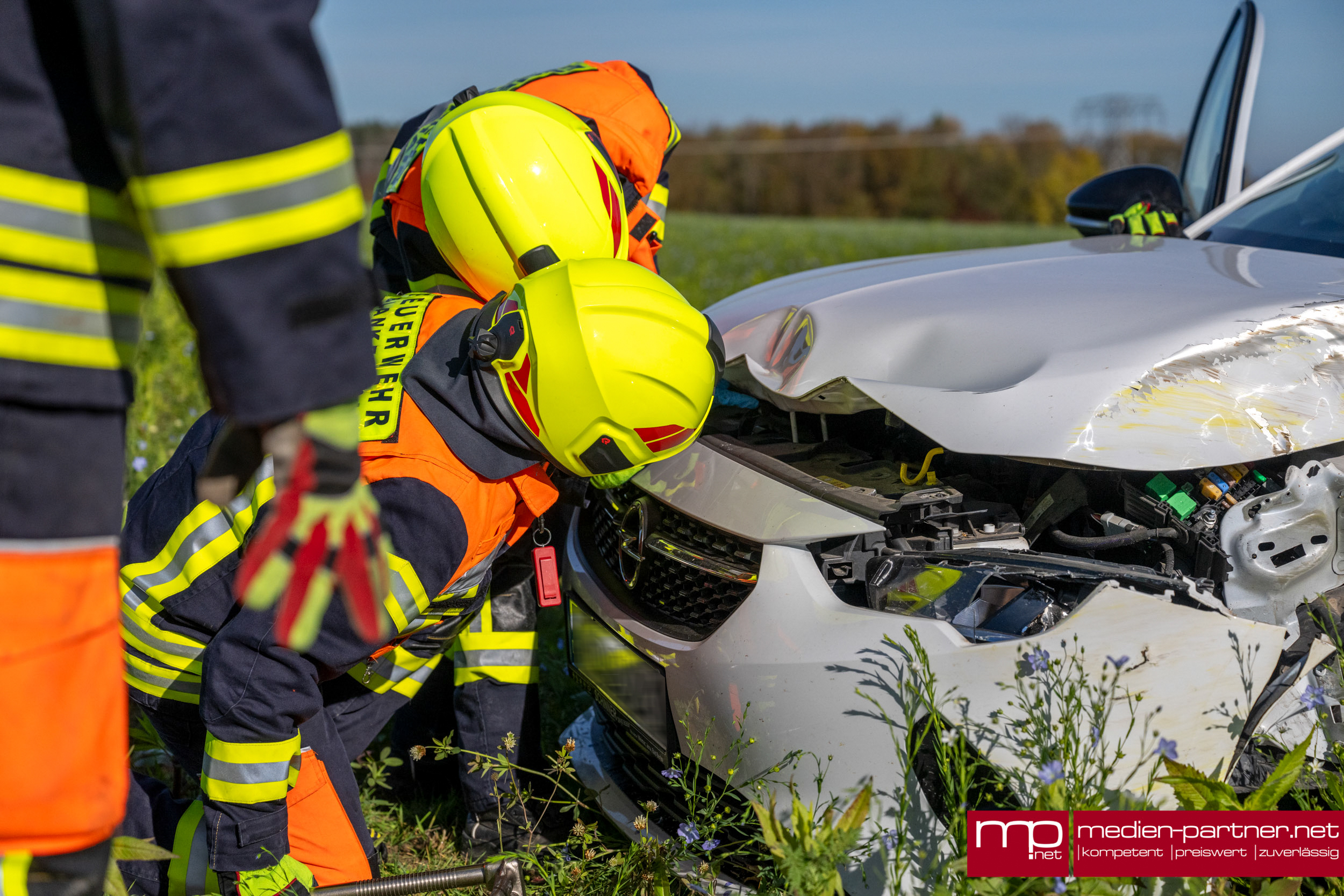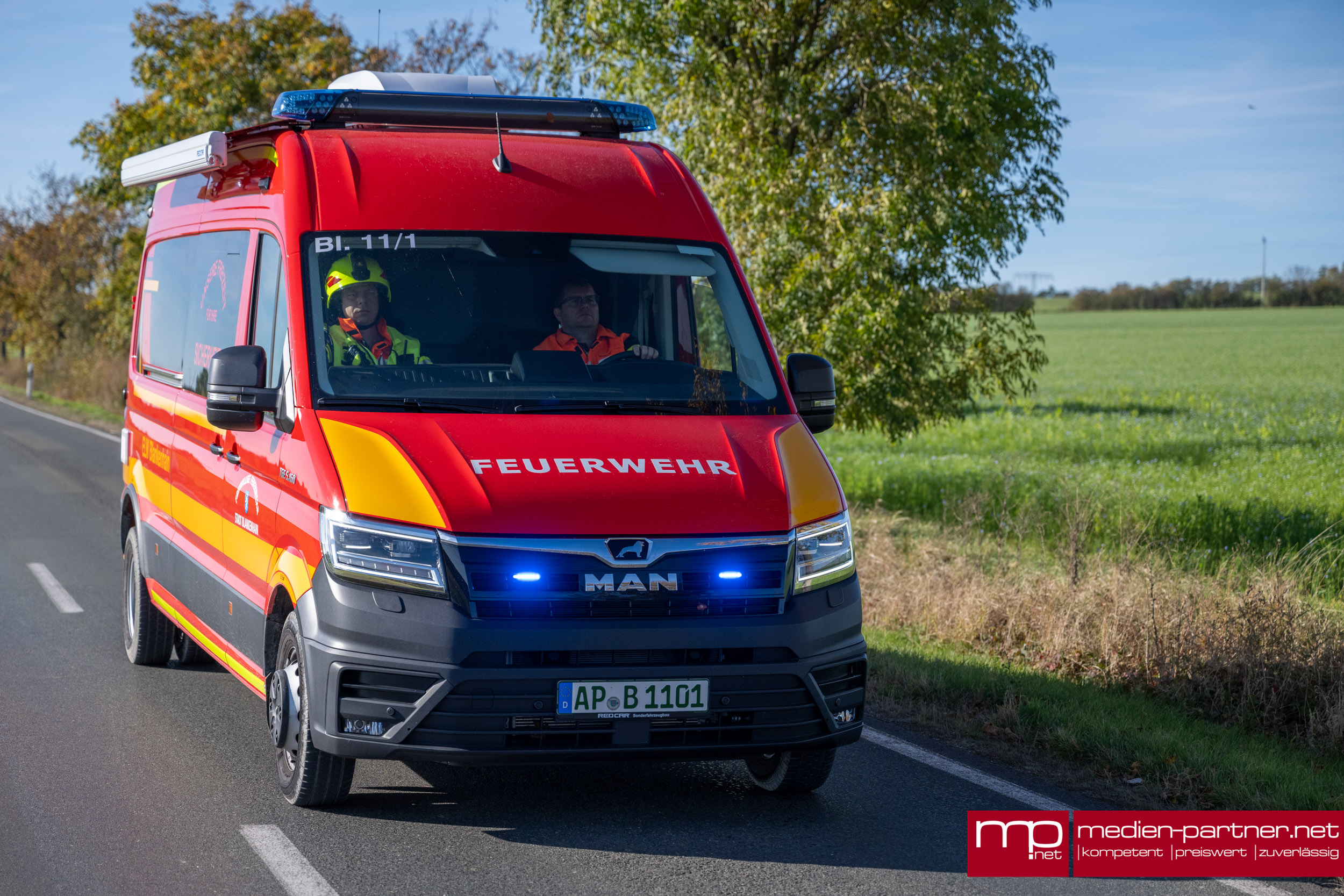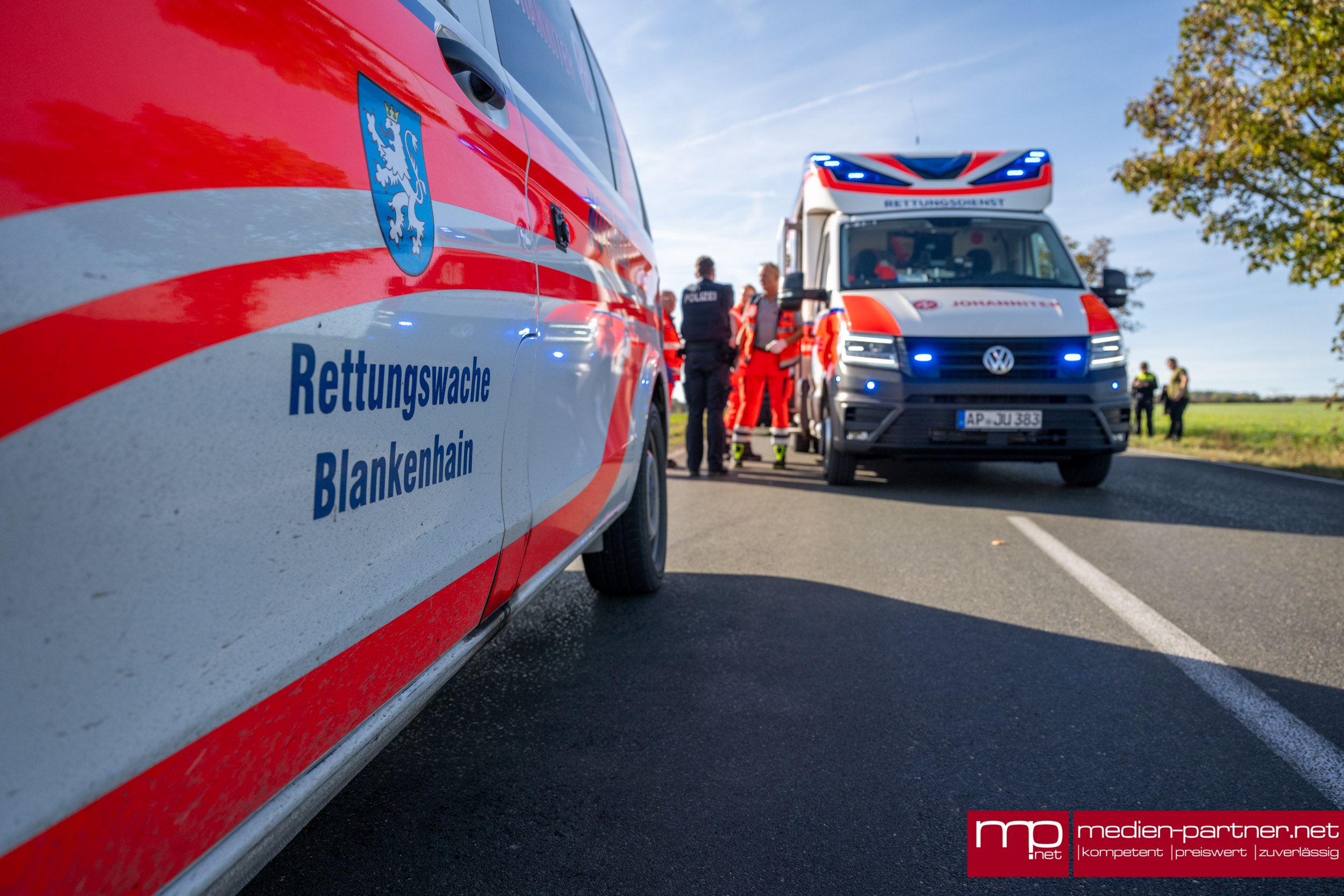 Die Frau war auf dem Weg zu einem pflegebedürftigen Menschen, als es zu dem Unfall kam. Vor Ort kümmerten sich sofort herbeigeeilte Ersthelfer um sie, bis der Rettungsdienst eintraf. Die Freiwillige Feuerwehr Blankenhain sicherte die Unfallstelle ab und stellte den Brandschutz sicher. So öffneten die Einsatzkräfte die Motorhaube des Fahrzeugs und klemmten die Batterie ab. Auslaufende Betriebsstoffe wurden mit Bindemittel aufgefangen.