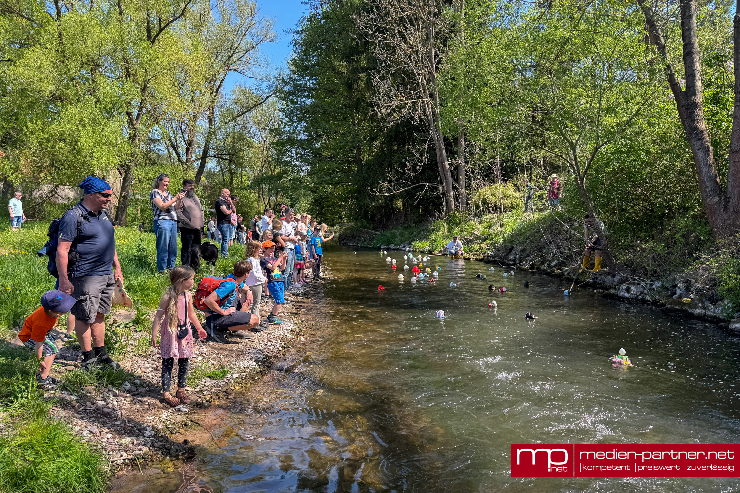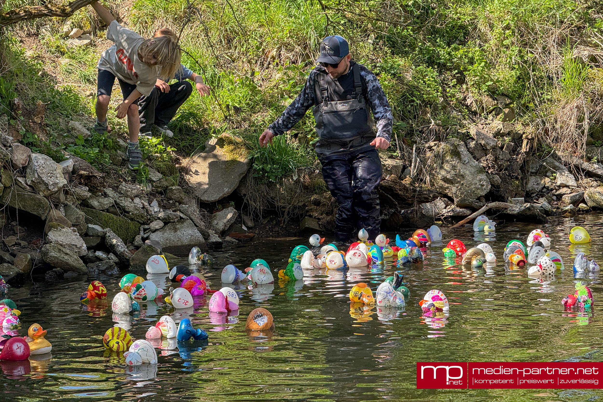Rund 250 bunt gestaltete Enten traten diesmal im Rennen gegeneinander an – rund 90 mehr als beim ersten Mal. Kurz vor dem Start durften Kinder und Erwachsene ihre Enten noch vor Ort kreativ gestalten. Besonders originell: eine Dino-Ente mit Mini-T-Rex-Armen, eine Bier-Ente mit Gläsern und viele weitere fantasievolle Designs.