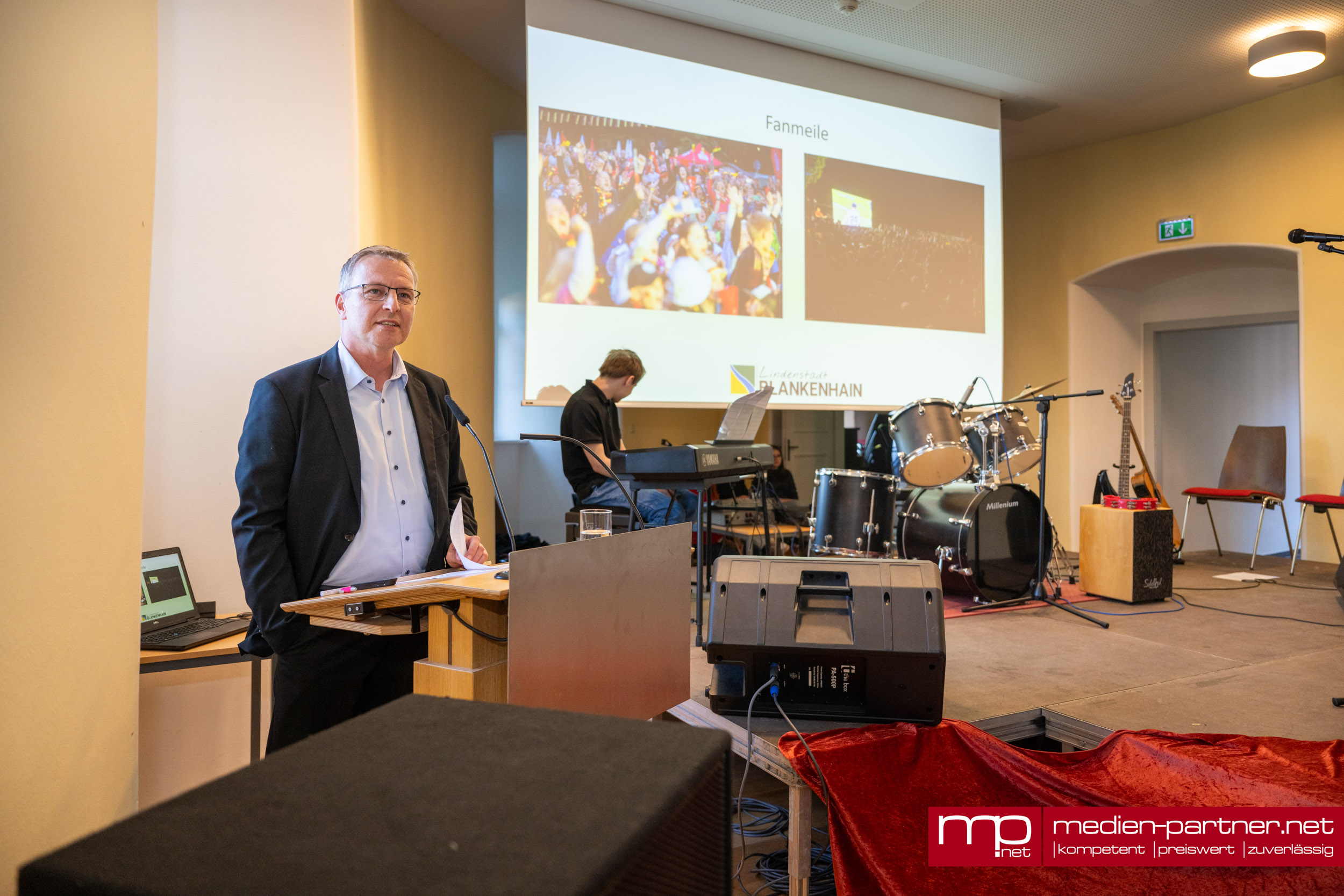 Im Zentrum des Rückblicks stand die Fußball-Europameisterschaft 2024, die nicht nur für großes öffentliches Interesse sorgte, sondern auch eine Welle des bürgerschaftlichen Engagements auslöste. Mit einer von Ehrenamtlichen betriebenen Fanmeile konnte sich Blankenhain überregional positiv präsentieren. Als bleibende Erinnerung wurde unter anderem der Schlossvorplatz in eine hochwertige, parkähnliche Anlage mit Veranstaltungsfläche umgestaltet. Neue Sitzmöglichkeiten, eine moderne Beleuchtung und ein Trinkbrunnen sollen zukünftig Bewohner und Gäste zum Verweilen einladen.
