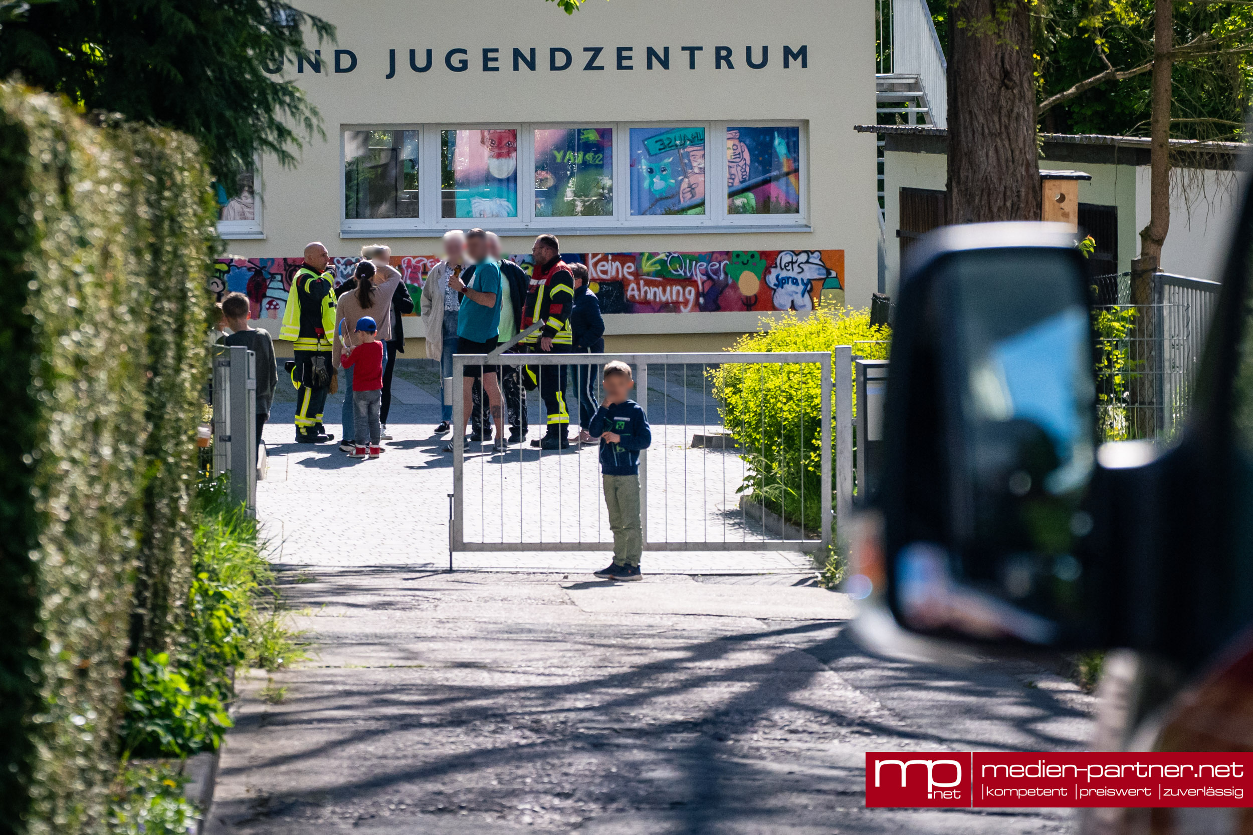 Nach Eintreffen der Einsatzkräfte wurde der betroffene Bereich sofort weiträumig abgesperrt. Der benachbarte Kindergarten wurde umgehend geräumt, die Kinder in das nahegelegene Familienzentrum gebracht. Auch mehrere Wohngebäude im direkten Umfeld wurden vorsorglich evakuiert.