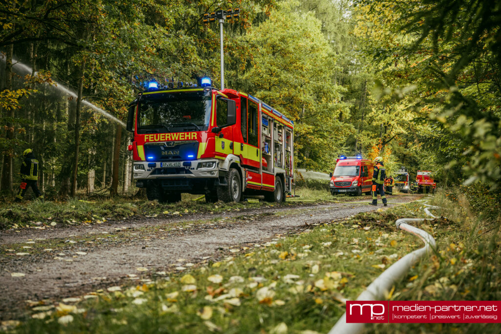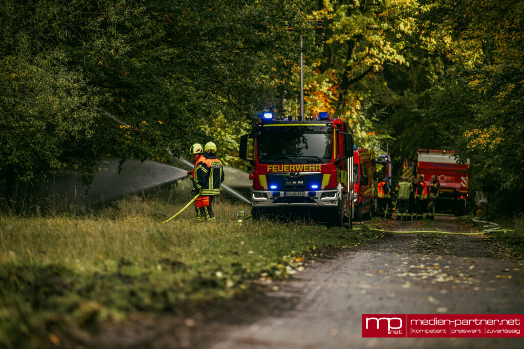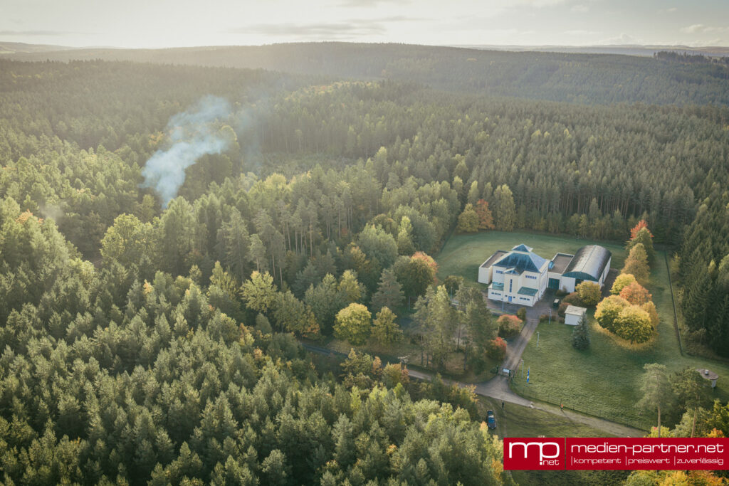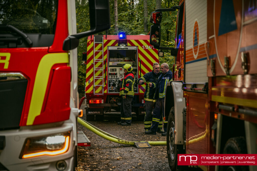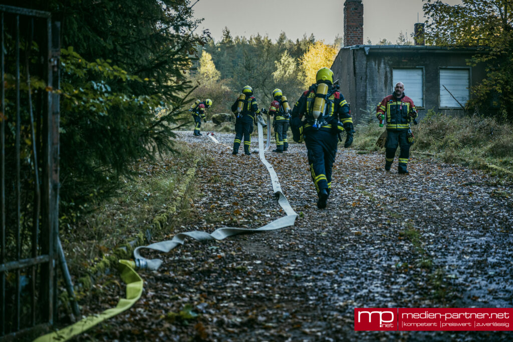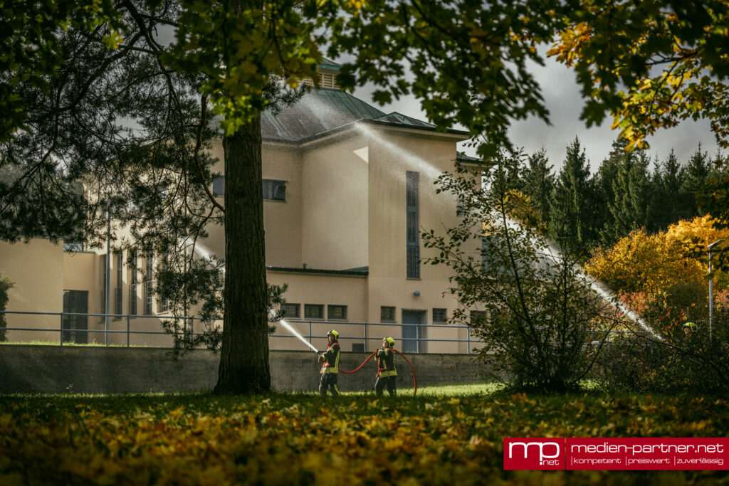 (Bad Berka) Ein dichter Rauchschleier über dem ehemaligen Bauhofgelände, Sirenen heulen, Feuerwehrfahrzeuge eilen durch den Wald, oberhalb der Trebestraße in Bad Berka: Was am Samstagvormittag wie ein echter Großeinsatz aussah, war eine umfangreiche Übung der Feuerwehr Bad Berka gemeinsam mit mehreren umliegenden Wehren. Ziel war es, den Ernstfall eines Gebäudebrandes mit Übergriff auf den Wald in Kombination mit dem Schutz kritischer Infrastruktur (KRITIS) zu proben – konkret das nahegelegene städtische Wasserwerk.