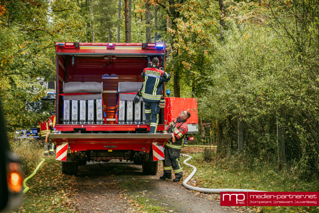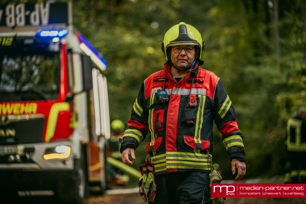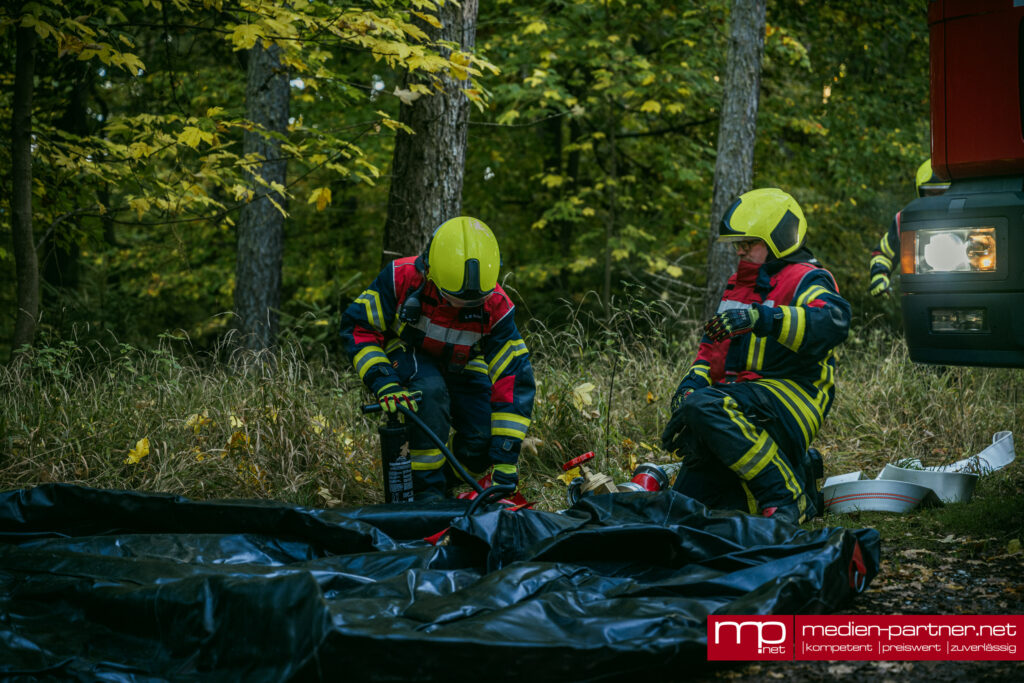 Gegen 12:30 Uhr endete der praktische Teil der Übung. Anschließend bauten die Wehren ihre Geräte zurück und trafen sich zur gemeinsamen Auswertung im Feuerwehrstützpunkt Bad Berka. Dort wurden Abläufe, Kommunikation und Materialeinsatz reflektiert.
