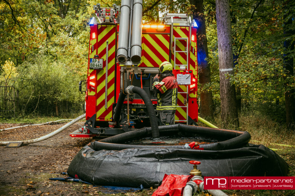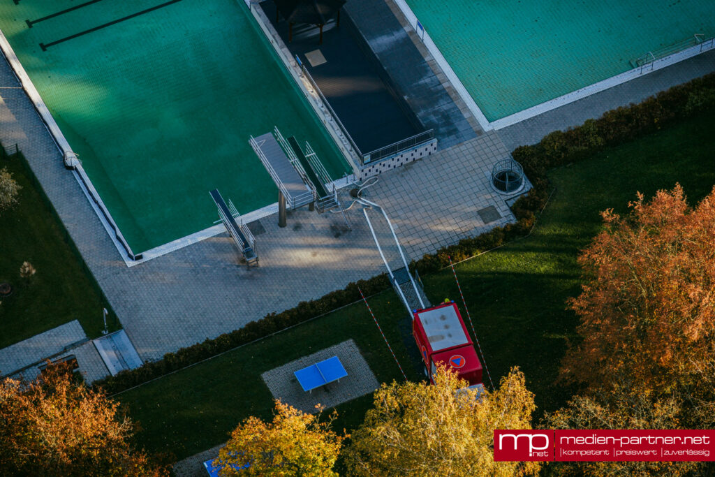 Das Freibad war wenige Tage zuvor winterfest gemacht worden, sodass das verbliebene Wasser ohne weiteres genutzt werden konnte. Eine Besonderheit war der erstmalige Einsatz einer Einsatzdrohne des Landkreises, die das Übungsgebiet aus der Luft zu Übungszwecken überflog und mithilfe von Wärmebildern den Brandverlauf dokumentierte. Damit konnten die Kräfte am Boden ihre Einsatztaktik ergänzend überwachen und analysieren.