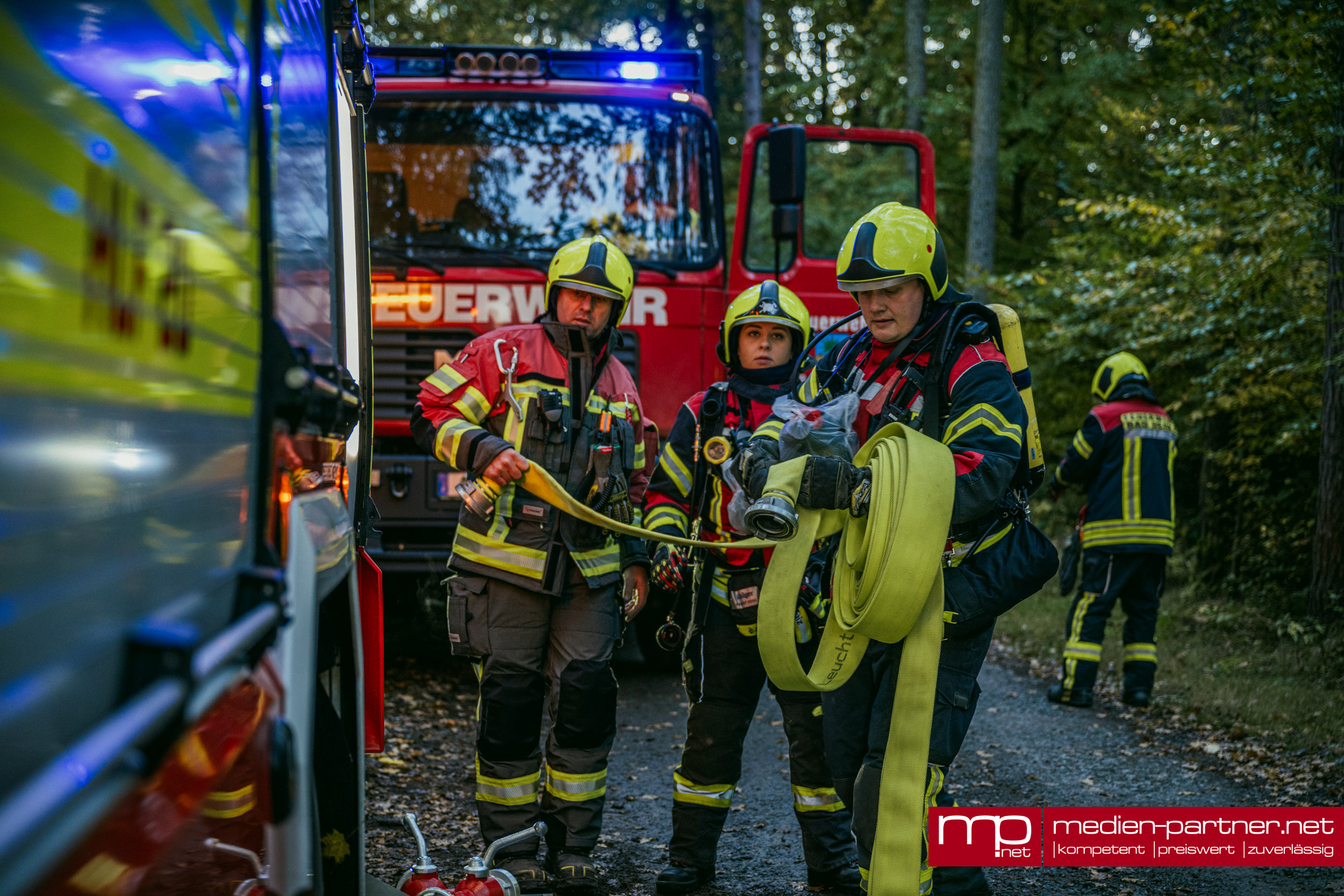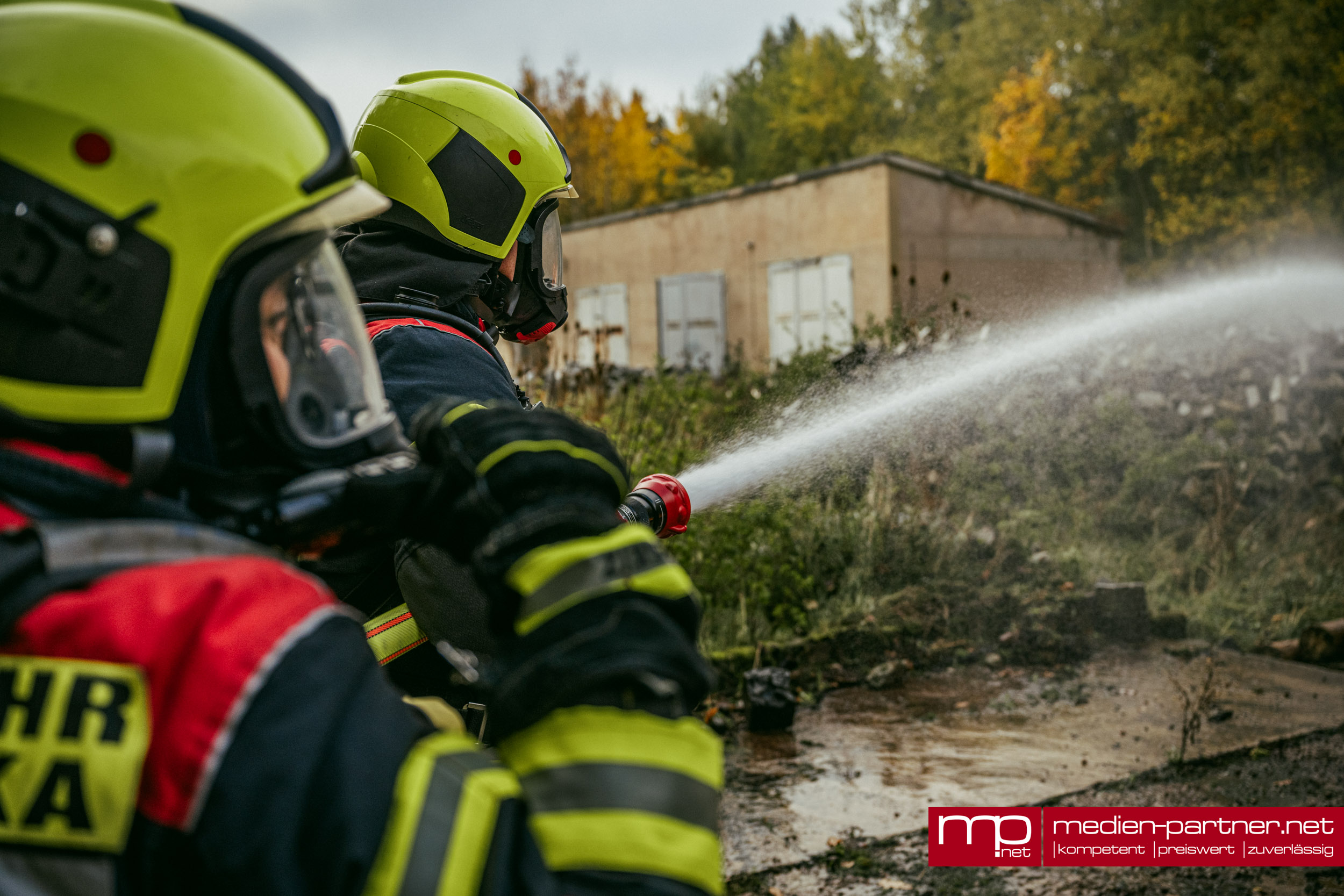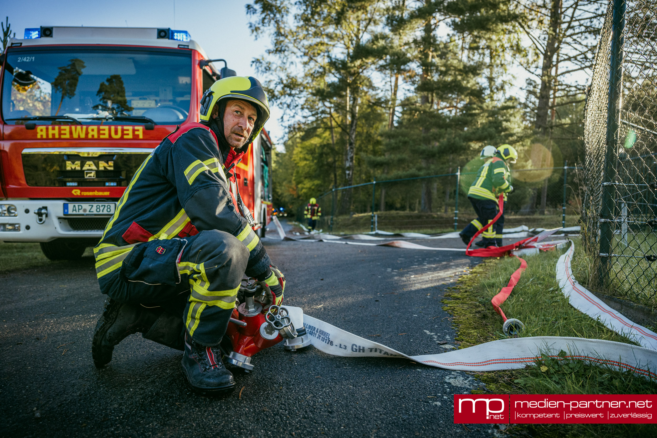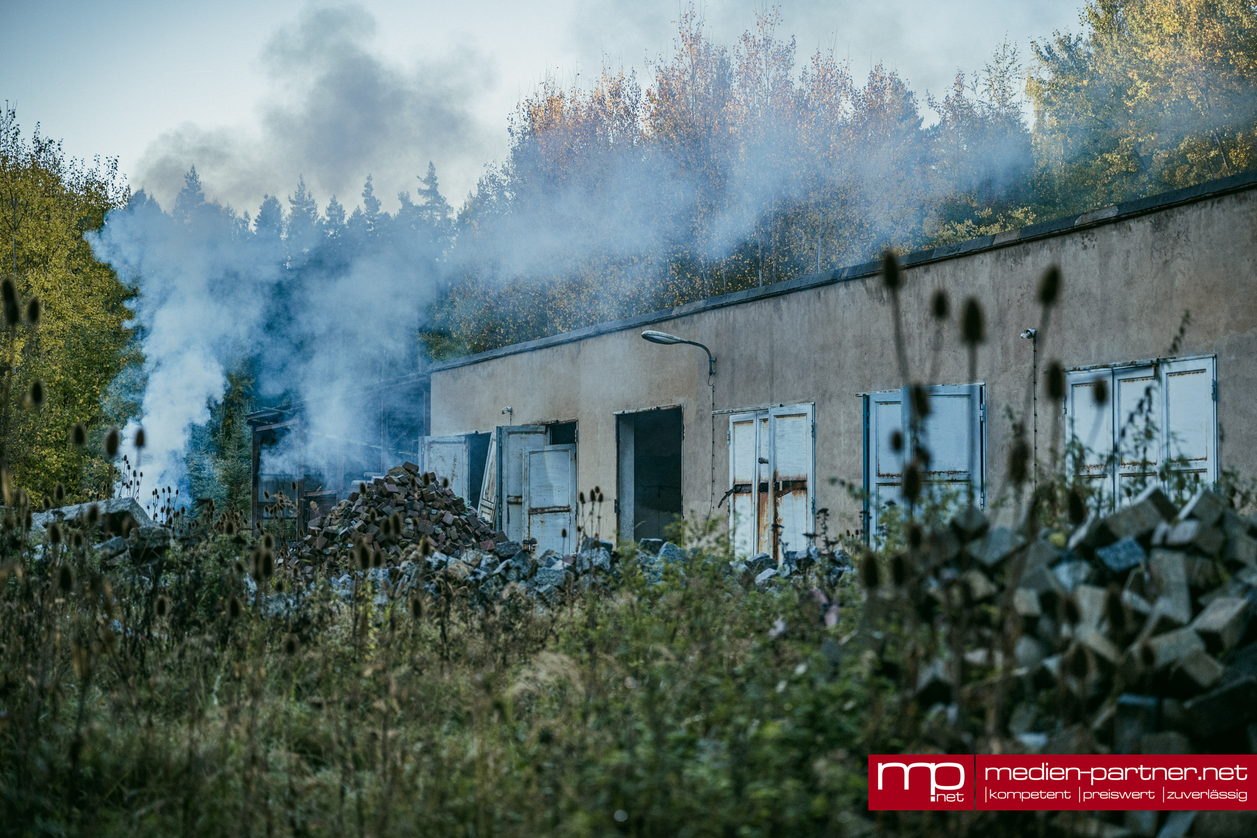 (Bad Berka) Ein dichter Rauchschleier über dem ehemaligen Bauhofgelände, Sirenen heulen, Feuerwehrfahrzeuge eilen durch den Wald, oberhalb der Trebestraße in Bad Berka: Was am Samstagvormittag wie ein echter Großeinsatz aussah, war eine umfangreiche Übung der Feuerwehr Bad Berka gemeinsam mit mehreren umliegenden Wehren. Ziel war es, den Ernstfall eines Gebäudebrandes mit Übergriff auf den Wald in Kombination mit dem Schutz kritischer Infrastruktur (KRITIS) zu proben – konkret das nahegelegene städtische Wasserwerk.