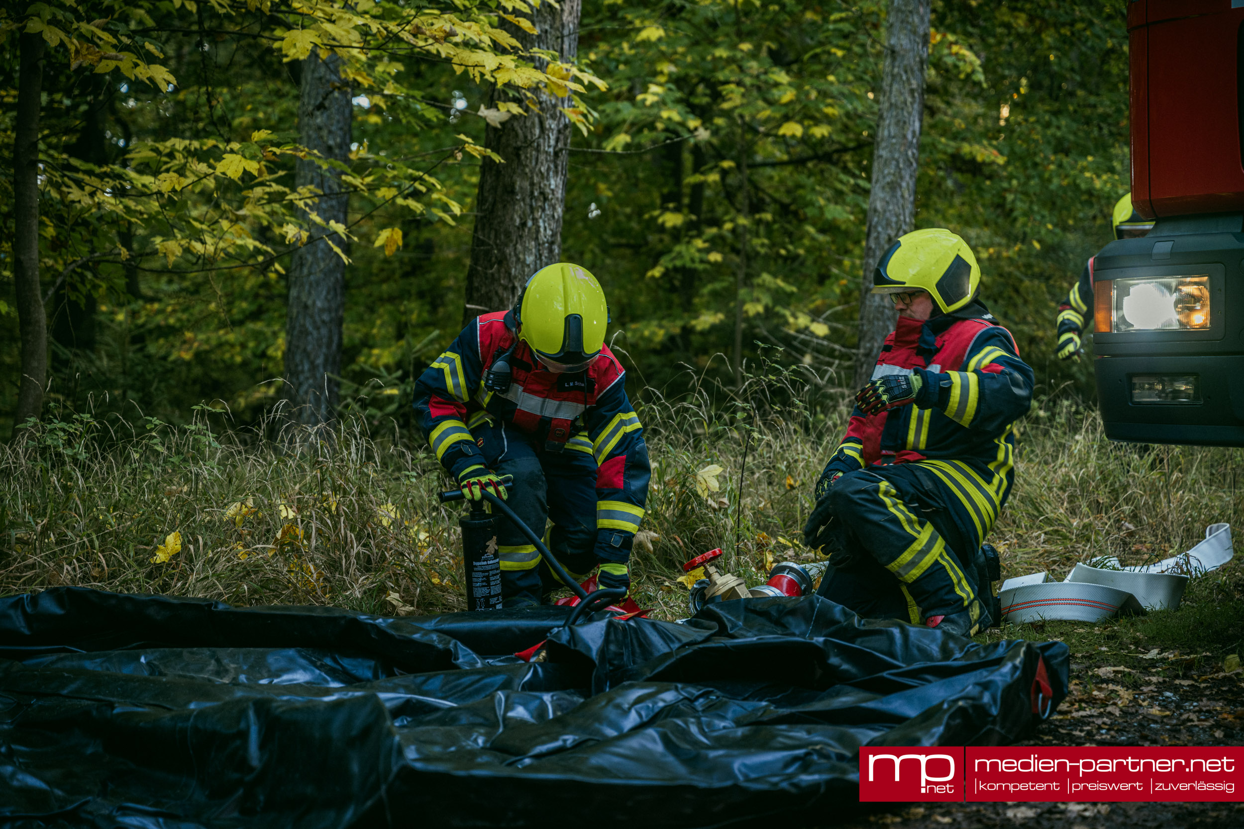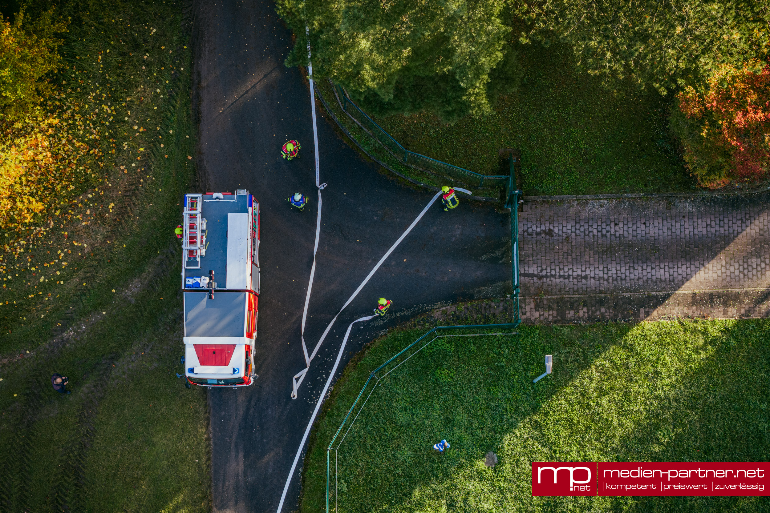 Das Freibad war wenige Tage zuvor winterfest gemacht worden, sodass das verbliebene Wasser ohne weiteres genutzt werden konnte. Eine Besonderheit war der erstmalige Einsatz einer Einsatzdrohne des Landkreises, die das Übungsgebiet aus der Luft zu Übungszwecken überflog und mithilfe von Wärmebildern den Brandverlauf dokumentierte. Damit konnten die Kräfte am Boden ihre Einsatztaktik ergänzend überwachen und analysieren.