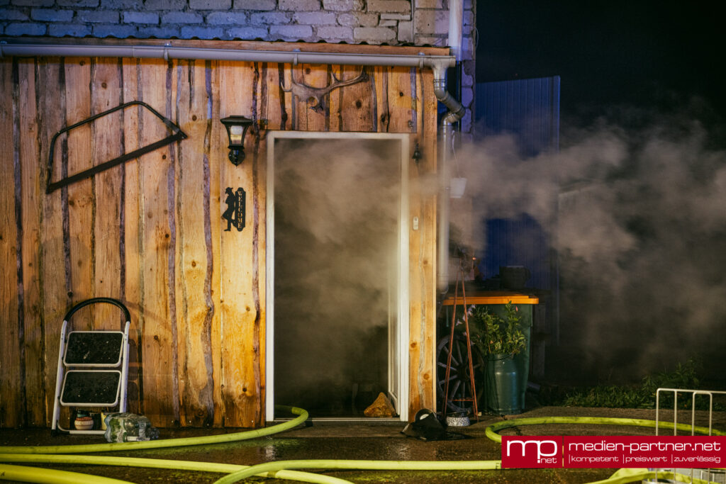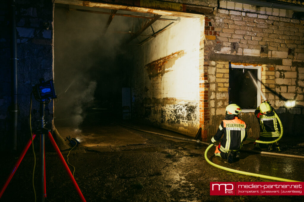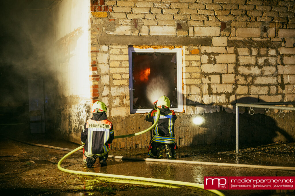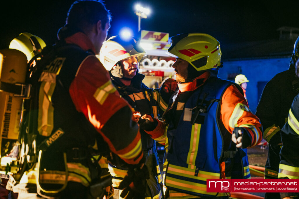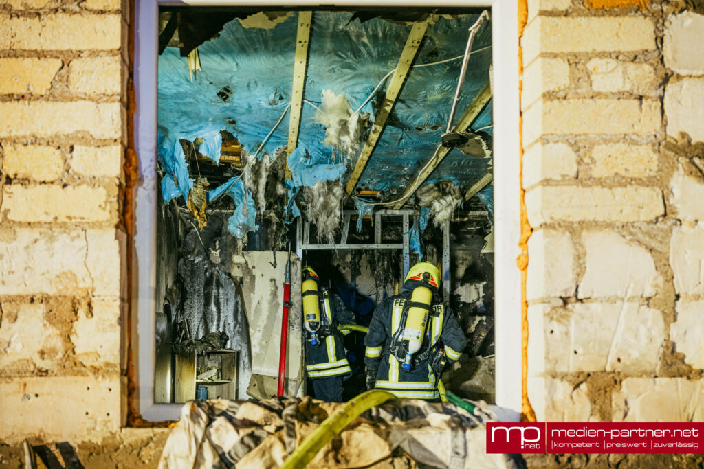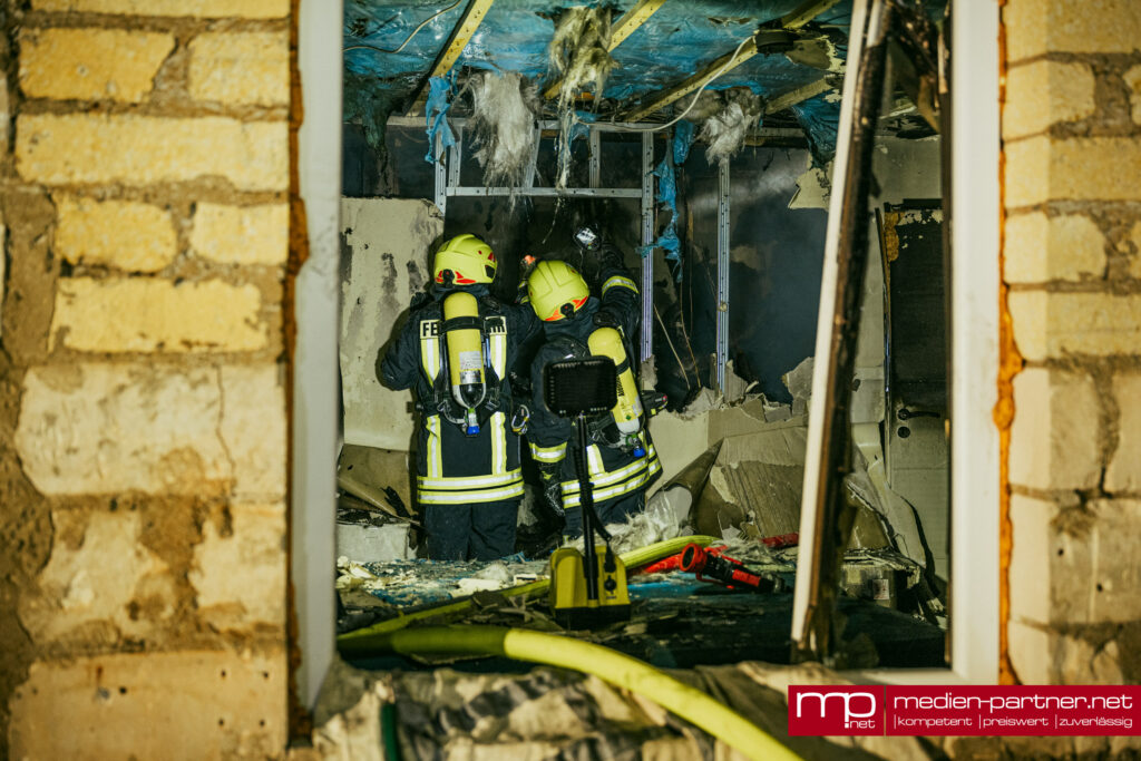Im Verlauf der Löscharbeiten kam es im Dachstuhl zu einer Durchzündung, weshalb zusätzlich Wasser über die Drehleiter eingebracht wurde. Kurzzeitig mussten die Einsatzkräfte zurückgezogen werden, da die Dachkonstruktion – eine Nagelbinderkonstruktion – als einsturzgefährdet galt. Nach einer Kontrolle stellte sich jedoch heraus, dass keine akute Gefahr bestand, da es sich um alte Schäden handelte.