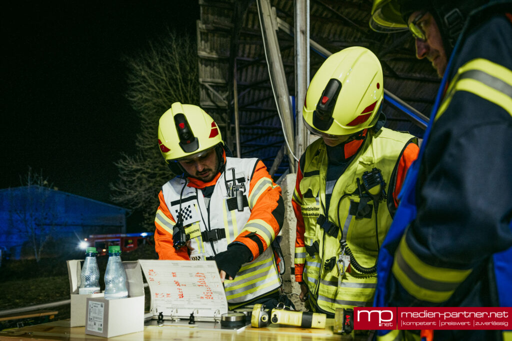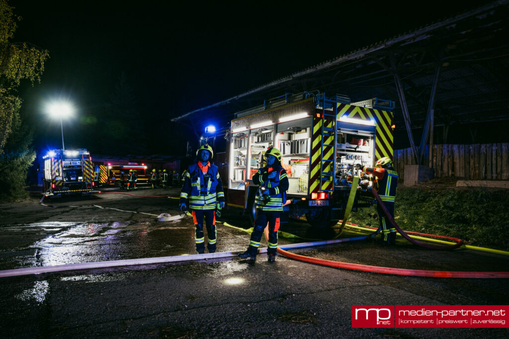 Besondere Vorsicht war wegen der verbauten Wellasbestplatten geboten. Um das Einatmen gefährlicher Stäube zu vermeiden, trugen die Feuerwehrkräfte auch FFP2-Masken. Auf das Einreißen des Daches wurde bewusst verzichtet.