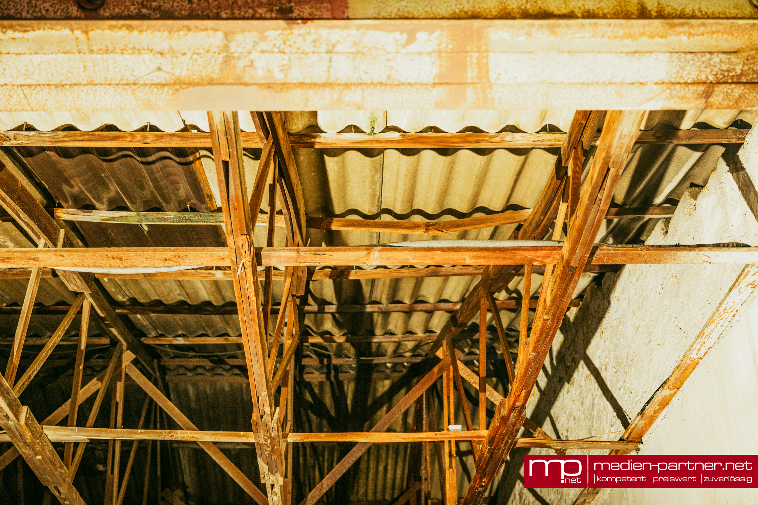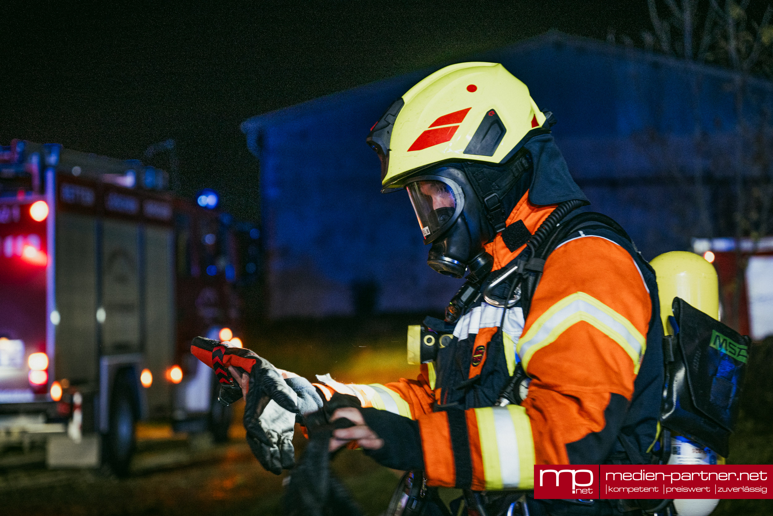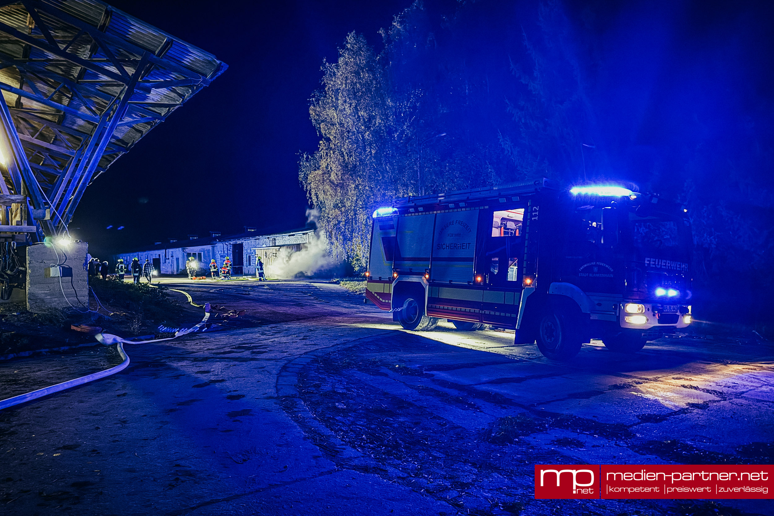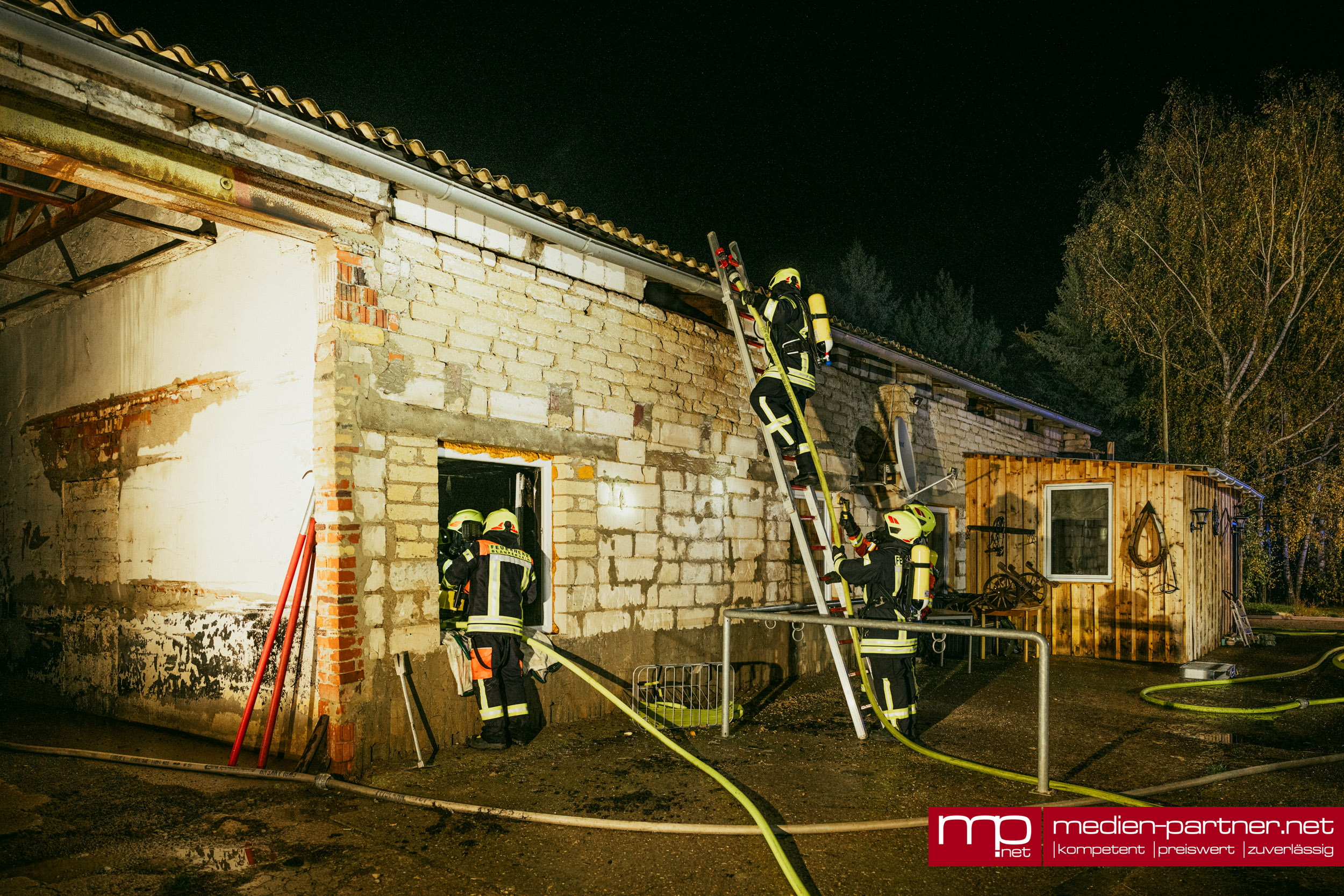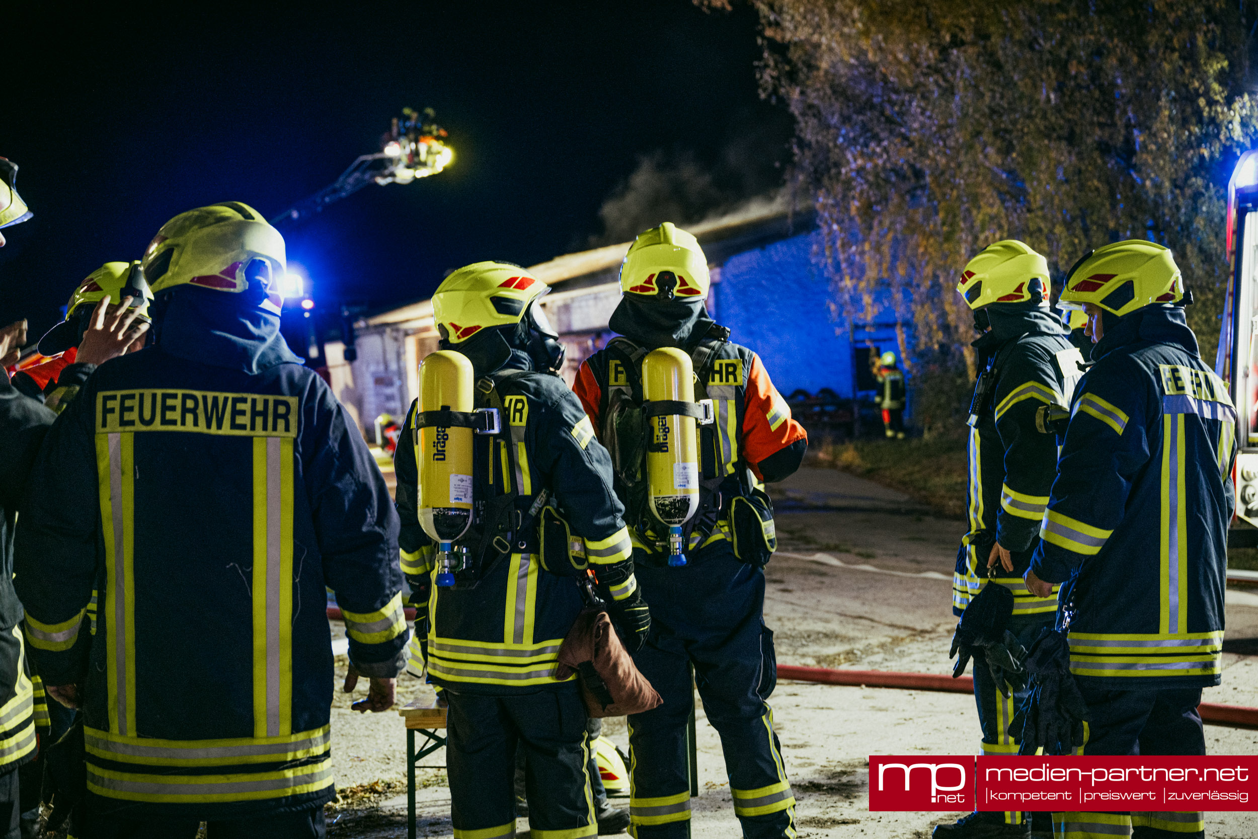 Besondere Vorsicht war wegen der verbauten Wellasbestplatten geboten. Um das Einatmen gefährlicher Stäube zu vermeiden, trugen die Feuerwehrkräfte auch FFP2-Masken. Auf das Einreißen des Daches wurde bewusst verzichtet.