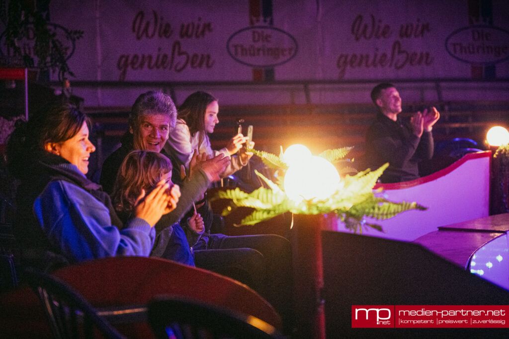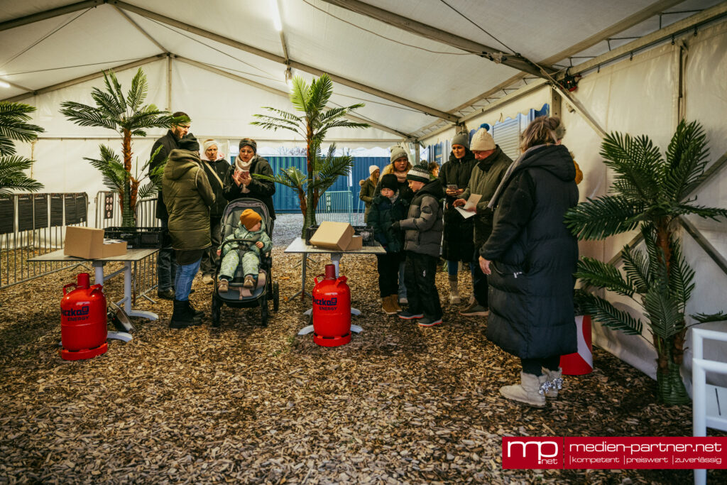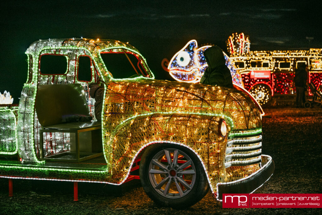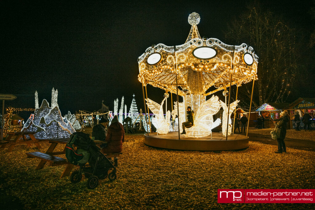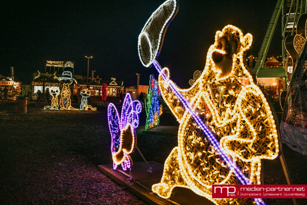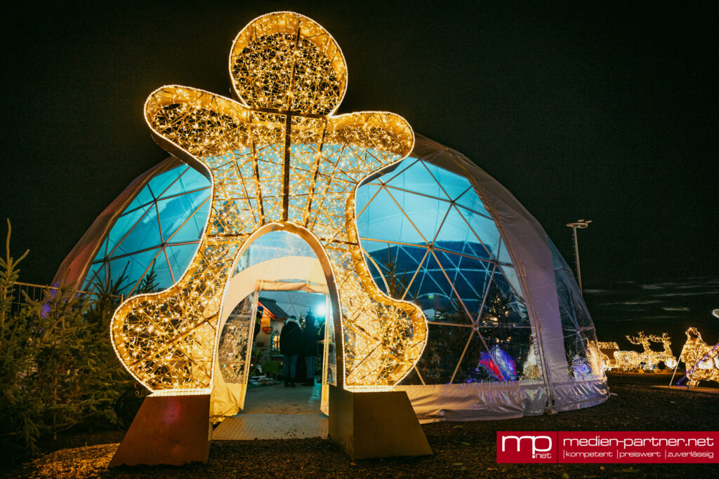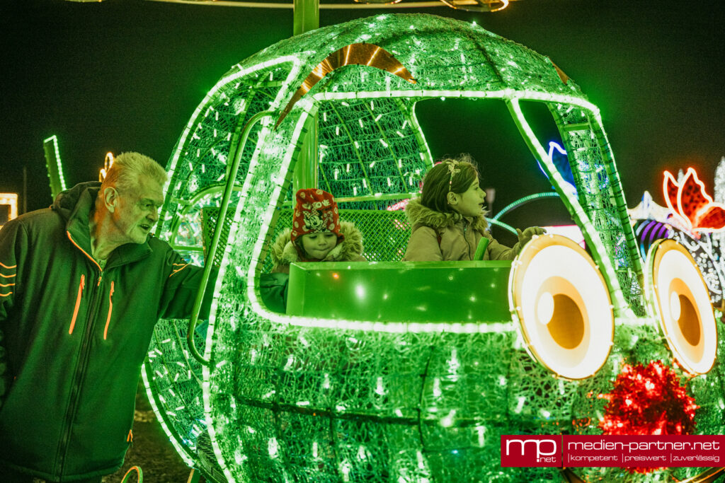(Stausee Hohenfelden) Wenn am Stausee Hohenfelden die Temperaturen fallen und die Badestege verwaisen, erwacht das Gelände zu einem völlig neuen Leben: Die Glitzerwelt öffnete am Freitagnachmittag um 16.00 Uhr wieder ihre Tore – ein Wintererlebnis an einem Ort, der im Sommer ganz anderen Klängen folgt. Wo sonst Kinder über den Spielplatz toben, im See baden oder mit Tretbooten fahren, funkeln nun Millionen Lichter.