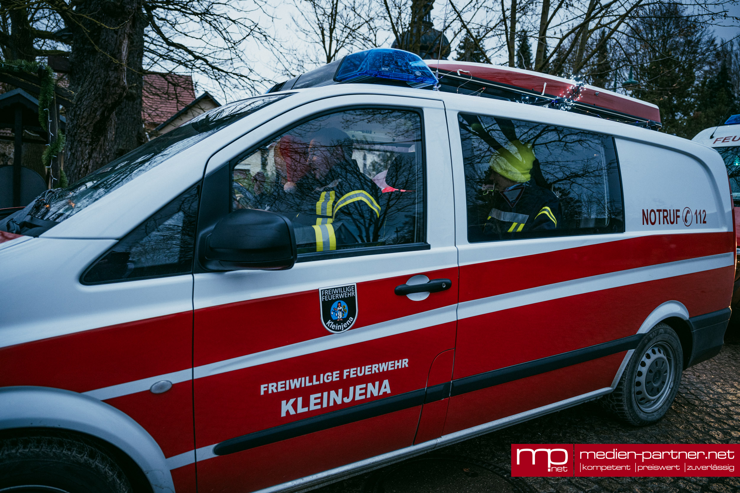 Am späten Nachmittag setzte sich die große Lichterfahrt in Bewegung. Geschmückte Lkw, Quads, Transporter, Feuerwehren und Privatfahrzeuge fuhren eine rund 30 Kilometer lange Strecke über Blankenhain, Bad Berka, Tonndorf und Tannroda zurück nach Thangelstedt.