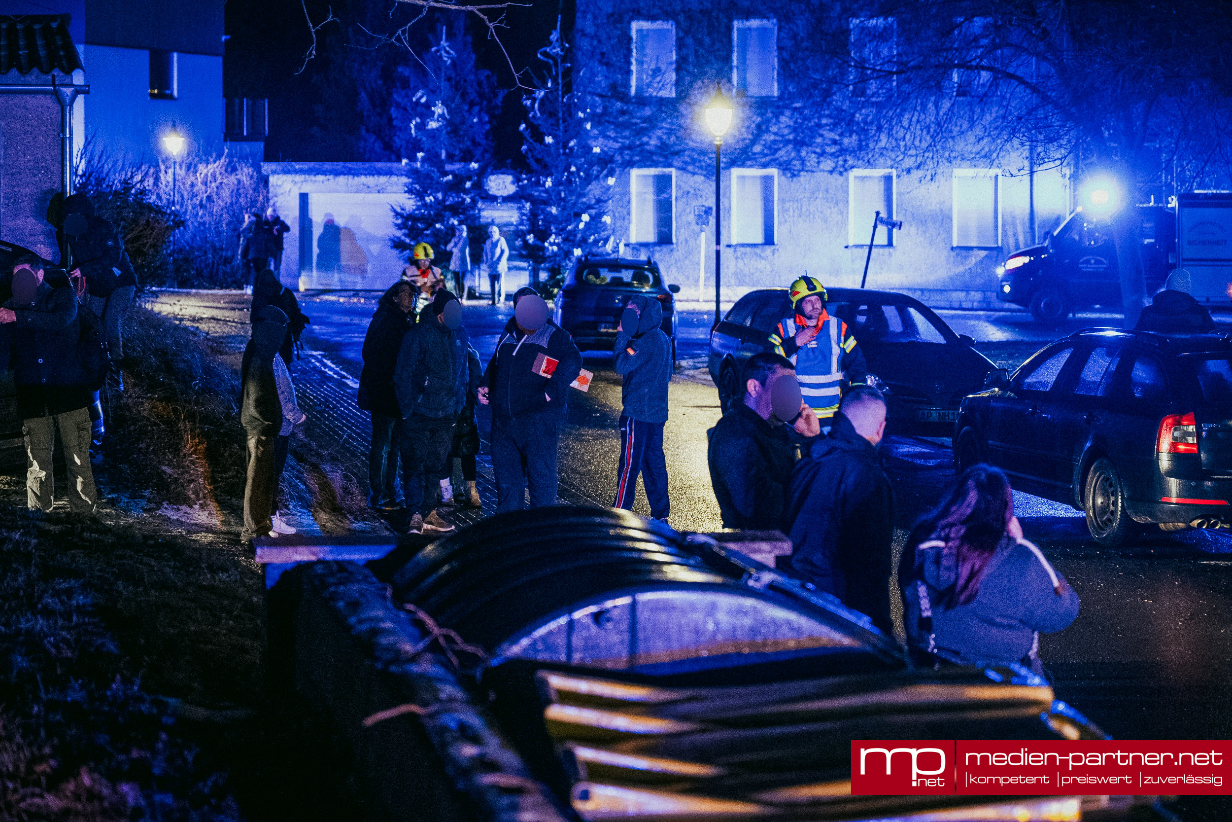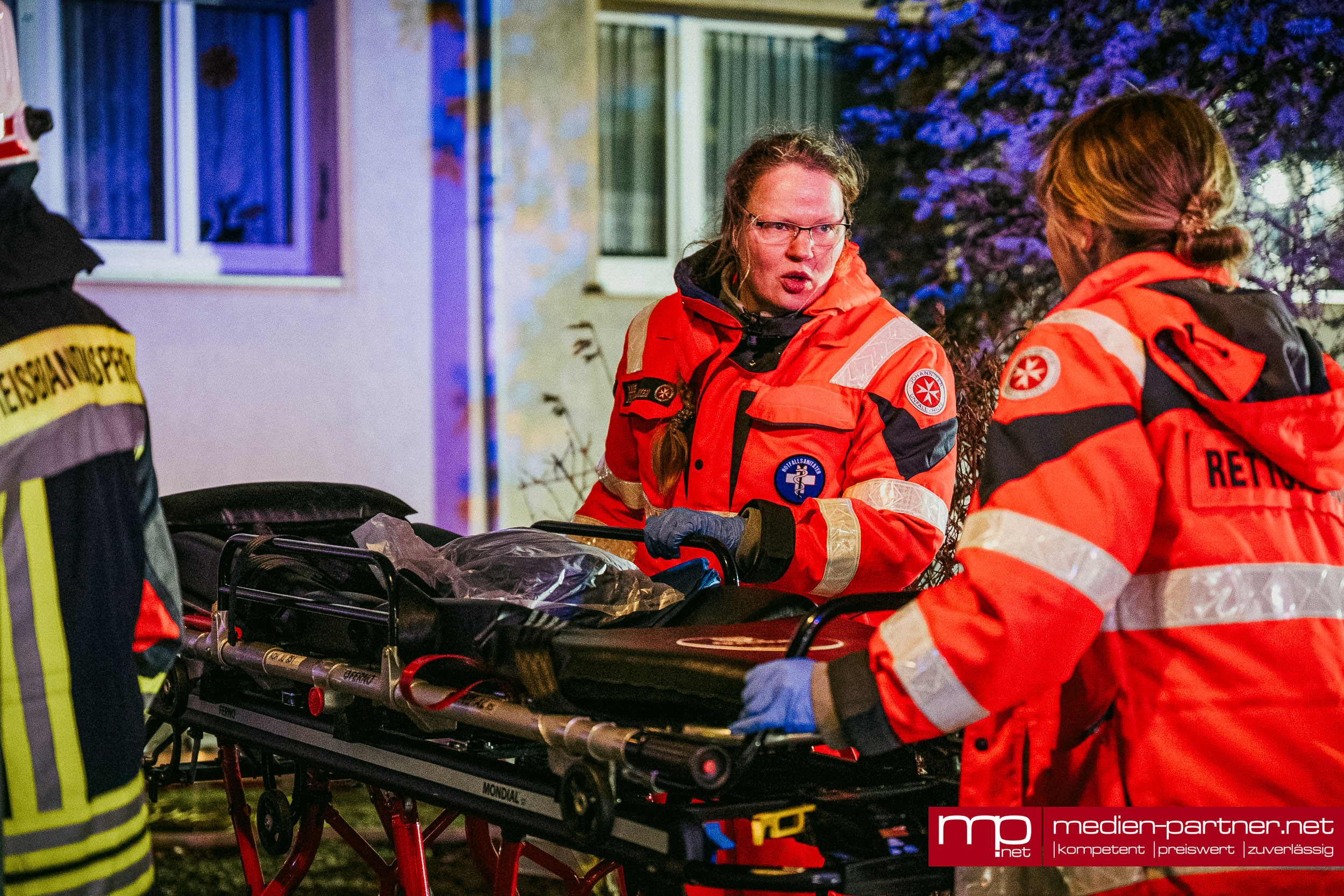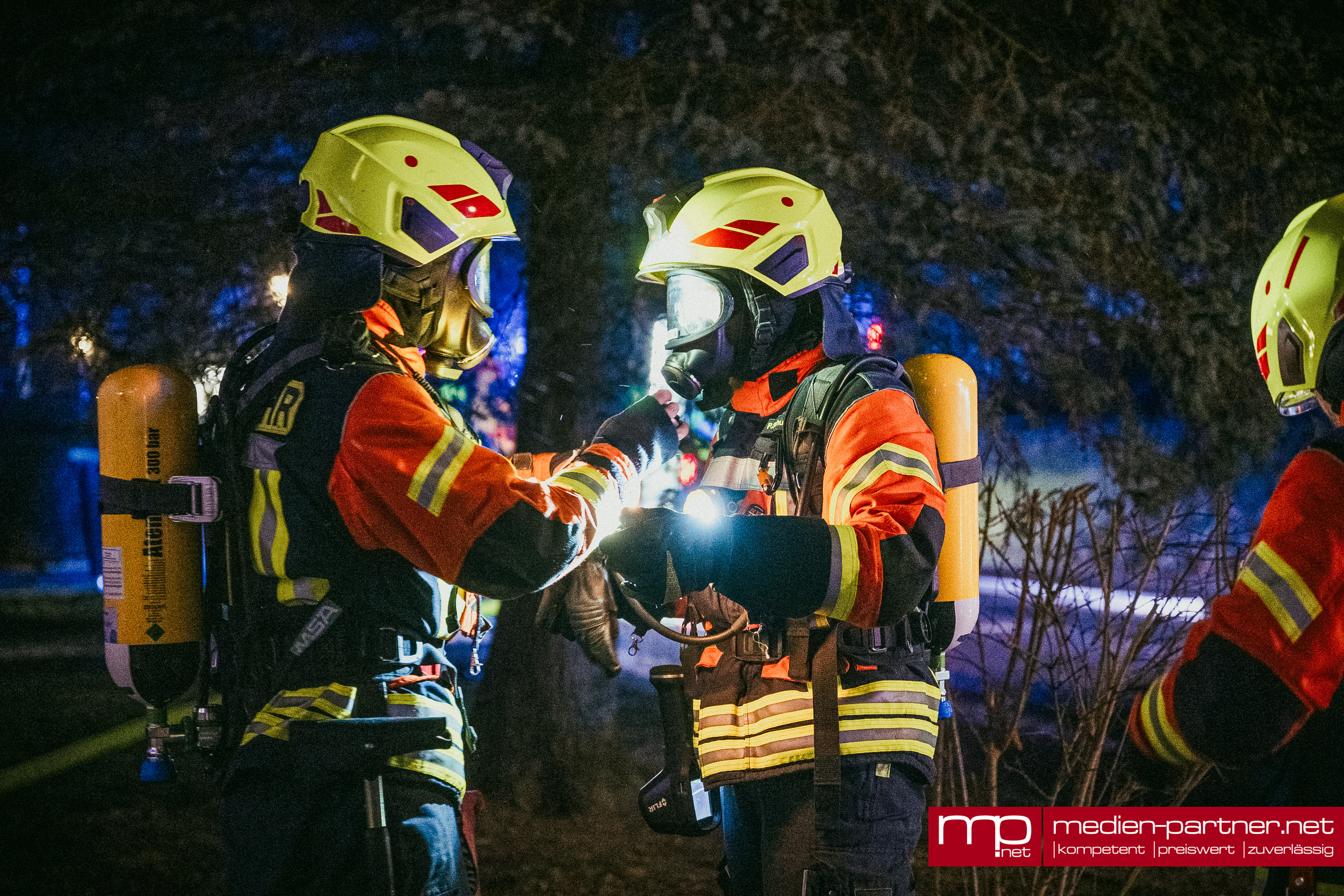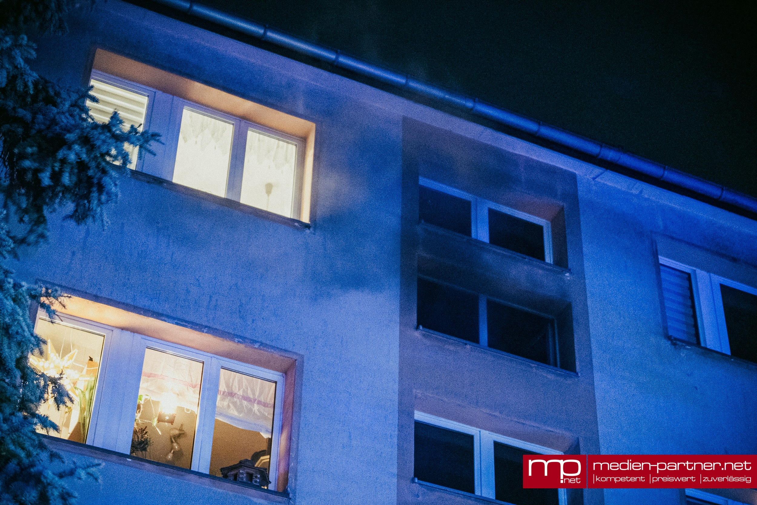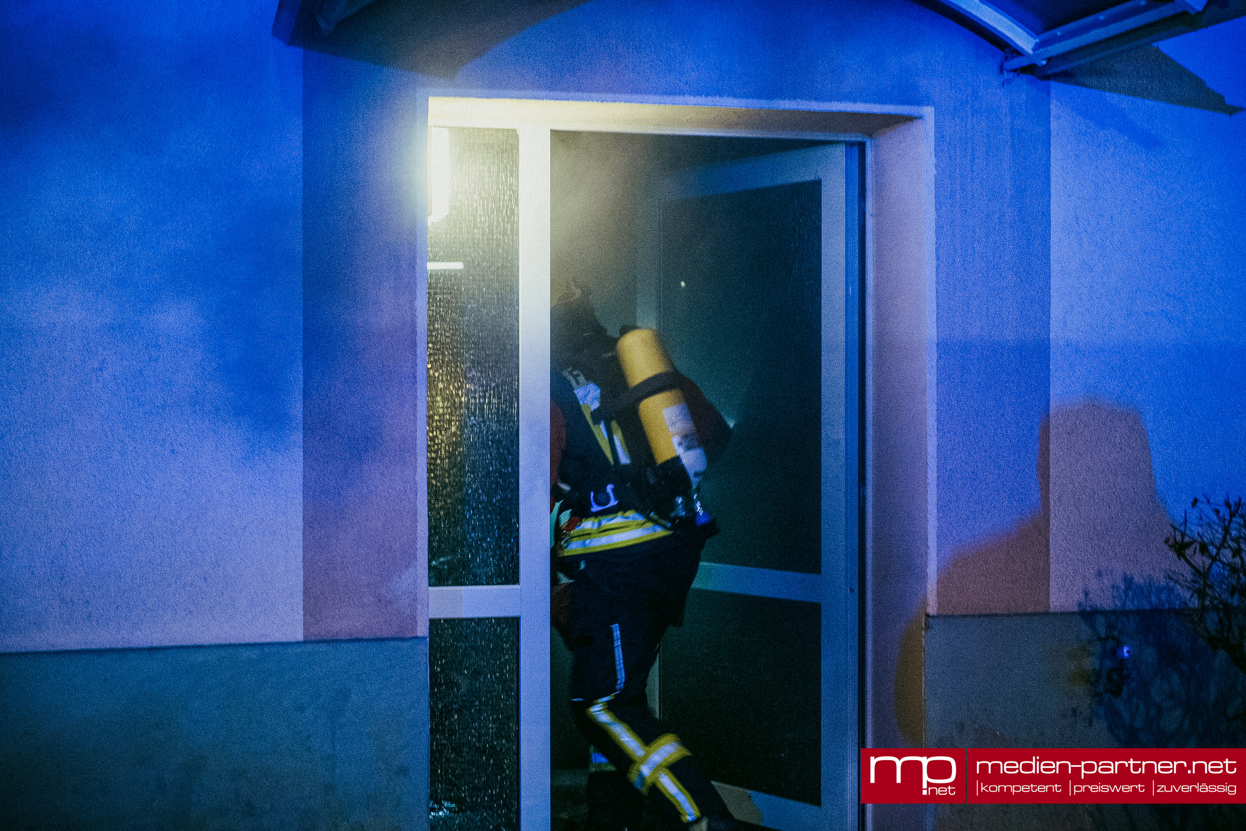 „Primär wurde die Personenrettung mittels Drehleiter durchgeführt. Atemschutztrupps brachten zudem Bewohner mit Fluchthauben durch die verrauchten Bereiche ins Freie“.