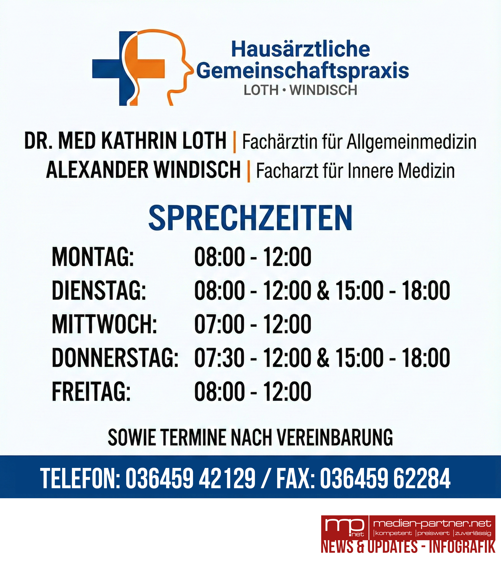 (Blankenhain) Der 2. Januar 2026 markiert einen wichtigen Wendepunkt für die ärztliche Versorgung in der Stadt. Während die Gemeinschaftspraxis Loth-Windisch neue Wege geht, wird in der Praxis Biedermann die Nachfolge aktiv gestaltet.