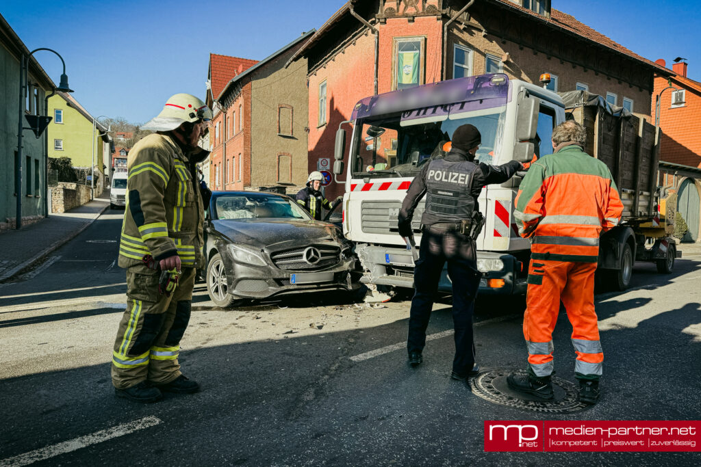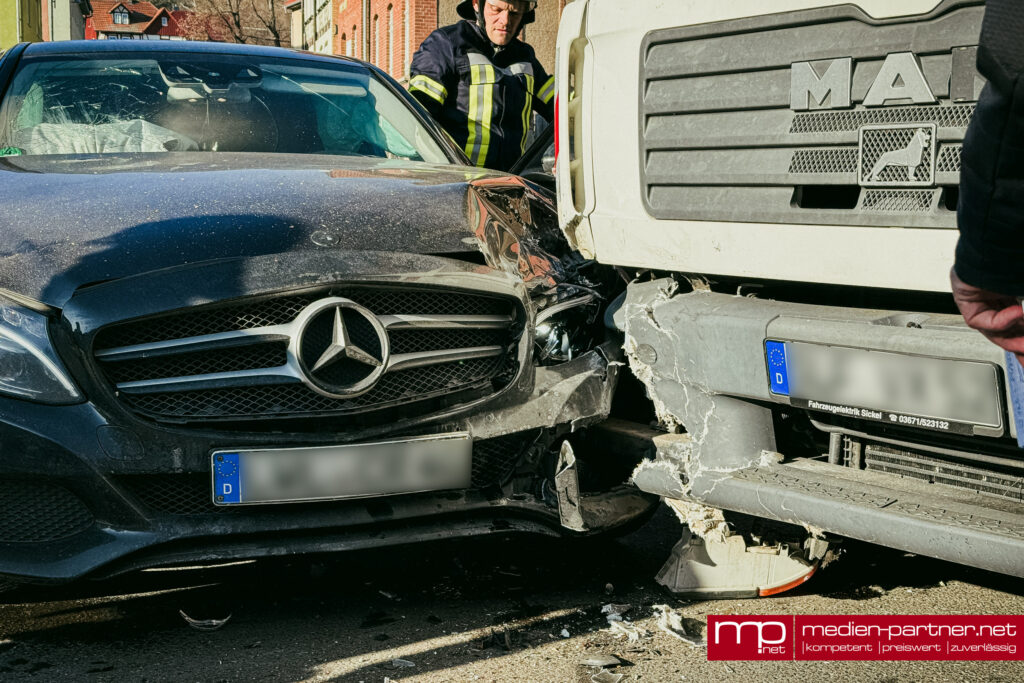 (Kranichfeld) Am Donnerstagvormittag ereignete sich gegen 11:15 Uhr ein schwerer Verkehrsunfall im Kreuzungsbereich der Alexanderstraße. Eine 39-jährige Autofahrerin war gemeinsam mit einem neunjährigen Jungen in der Rudolf-Baumbach-Straße unterwegs und beabsichtigte, auf die Alexanderstraße aufzufahren.