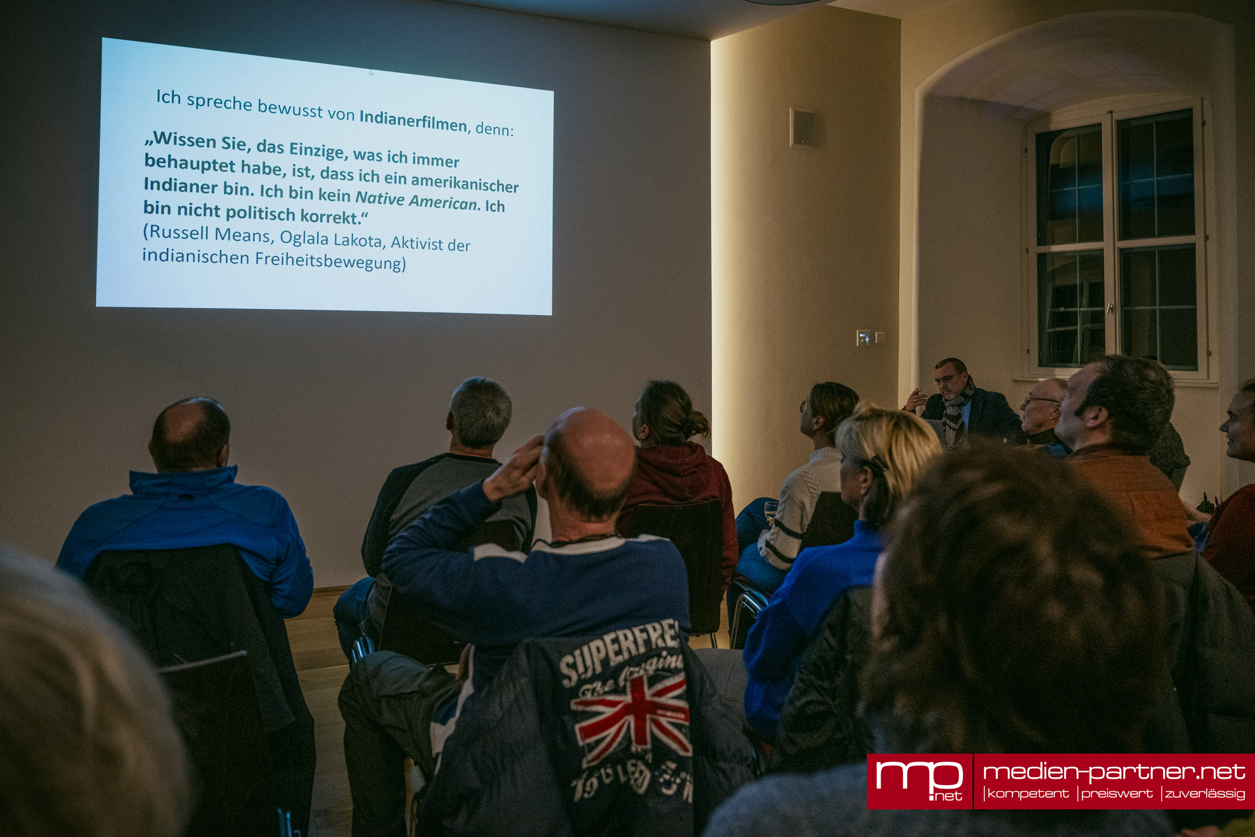 Zu Gast war der Fachbuchautor Stefan Wogawa, der als einer der führenden Experten für das Genre der DEFA-Indianerfilme gilt. Wogawa, der im Blankenhainer Ortsteil Schwarza zu Hause ist, beleuchtete in seinem Vortrag die tiefgreifenden Unterschiede zwischen den westdeutschen Karl-May-Verfilmungen und den Produktionen aus dem Osten Deutschlands. Während die Winnetou-Filme eher als „Märchenfilme“ ohne realhistorischen Hintergrund zu betrachten seien, zeichneten sich die DEFA-Filme durch eine Erzählweise aus der Perspektive der Indigenen selbst aus.