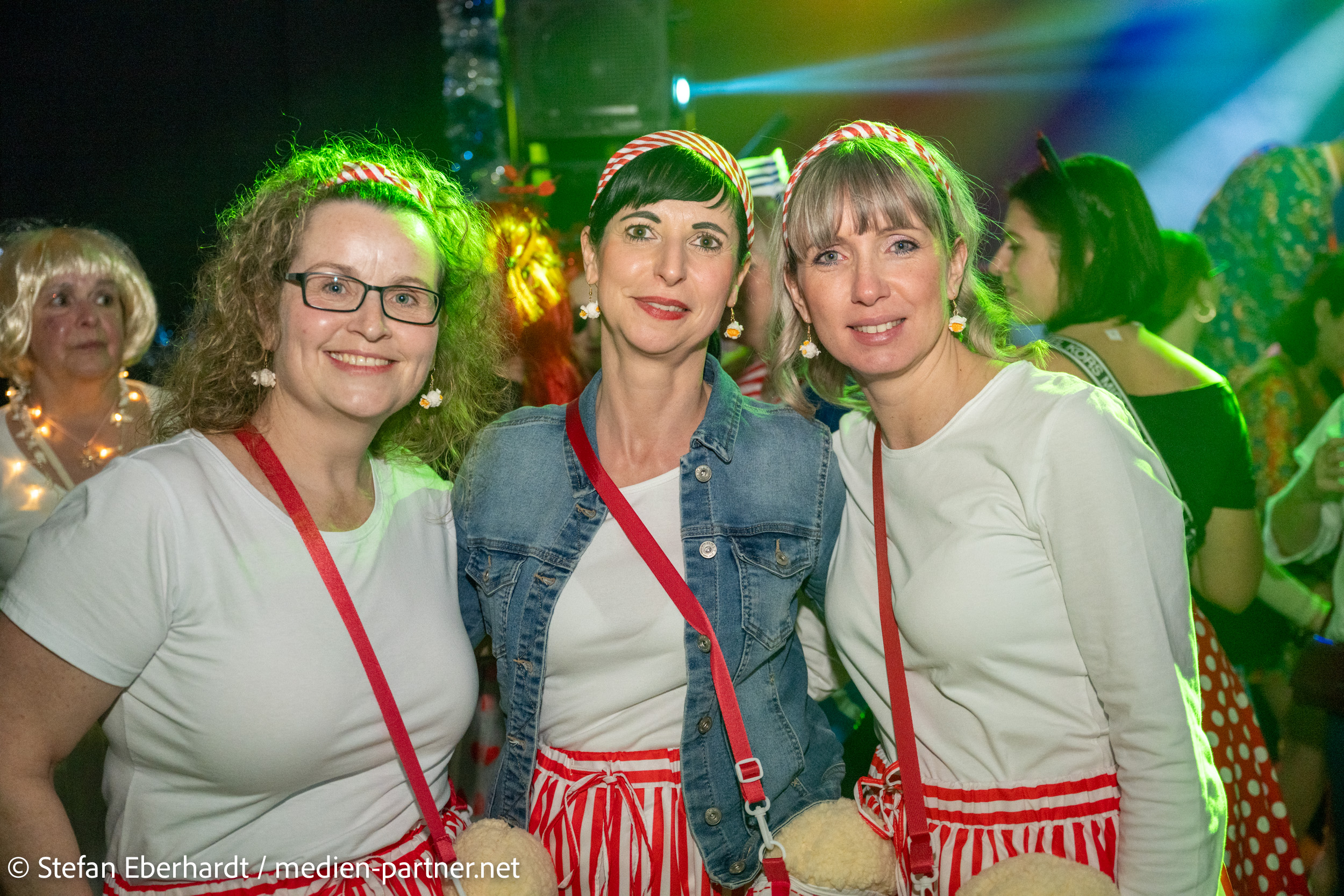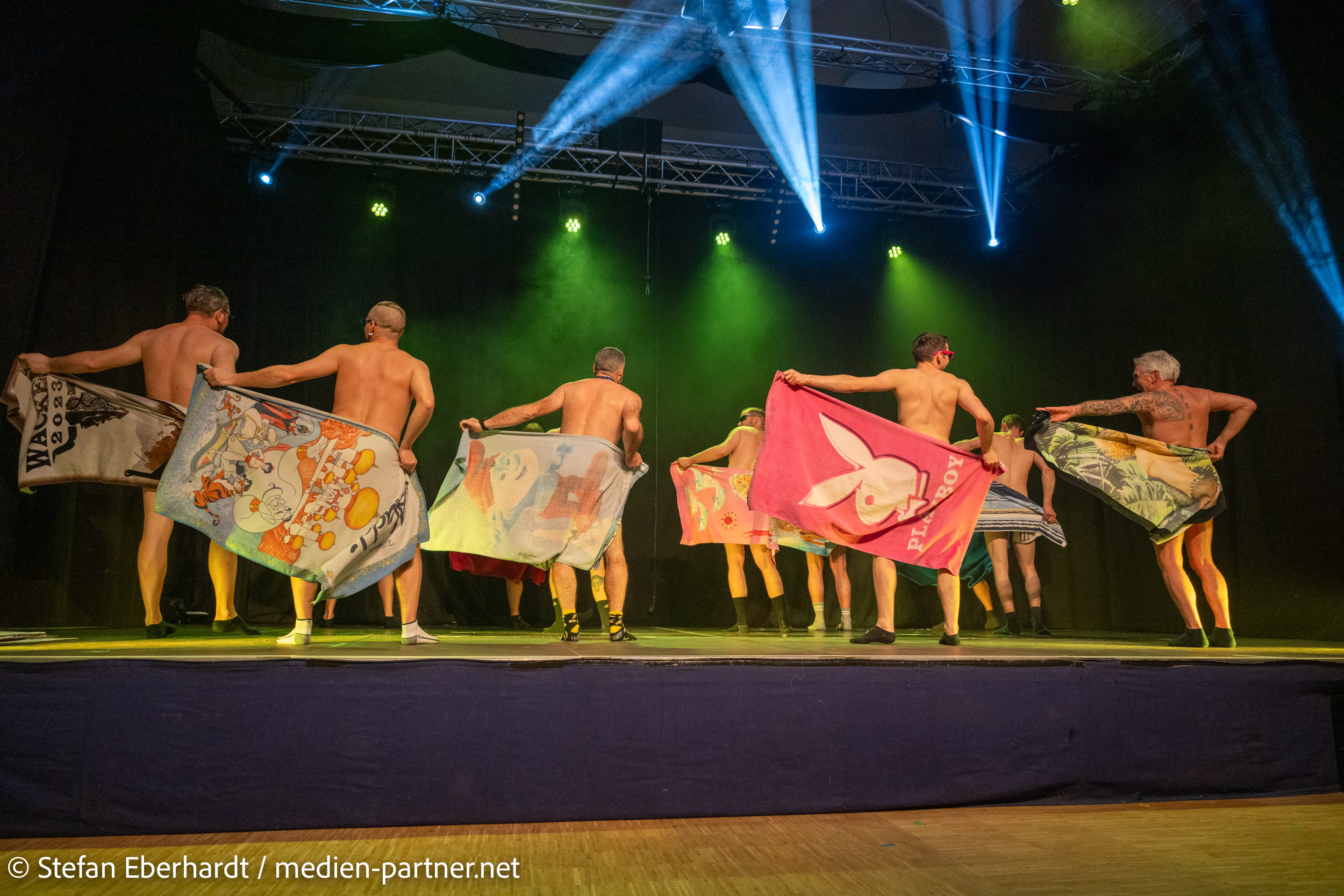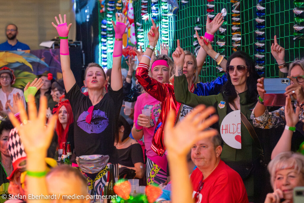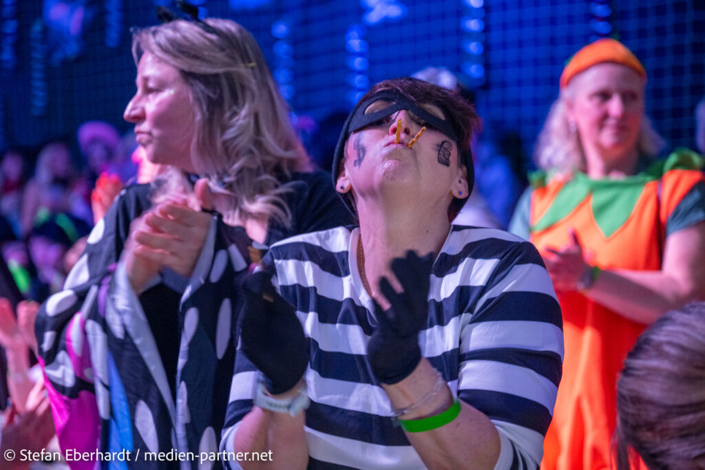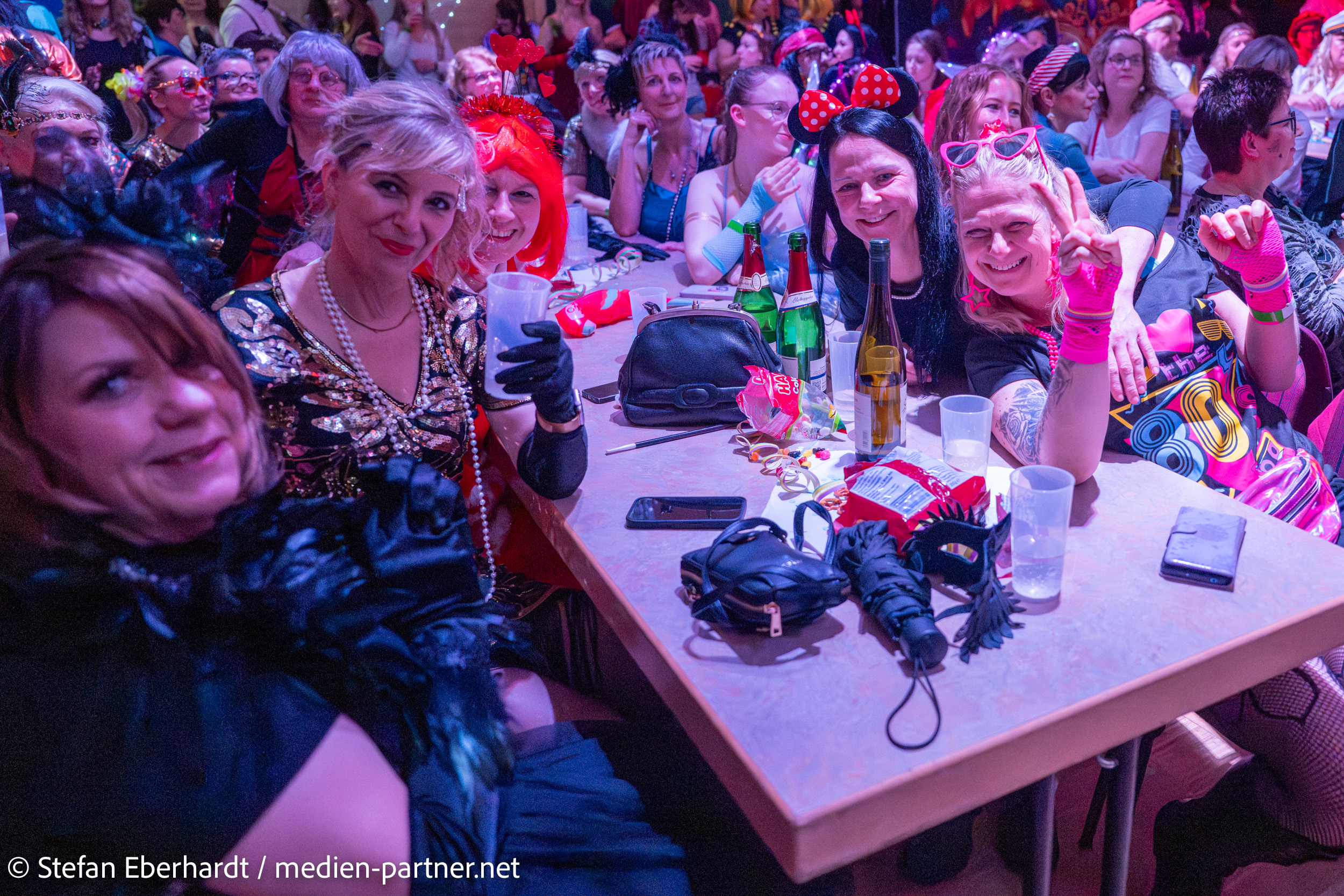 Ein optisches Highlight war zweifellos der Auftritt des Männerballetts, das in knappen Badehosen-Outfits die Bühne stürmte und die Damenwelt zu Begeisterungsstürmen hinriss. Damit die Energie im Saal konstant hoch blieb, heizte Holm den Gästen zwischendurch ordentlich ein und stimmte eine riesige Polonaise an, die sich durch die Reihen der bunt kostümierten Weiber zog.