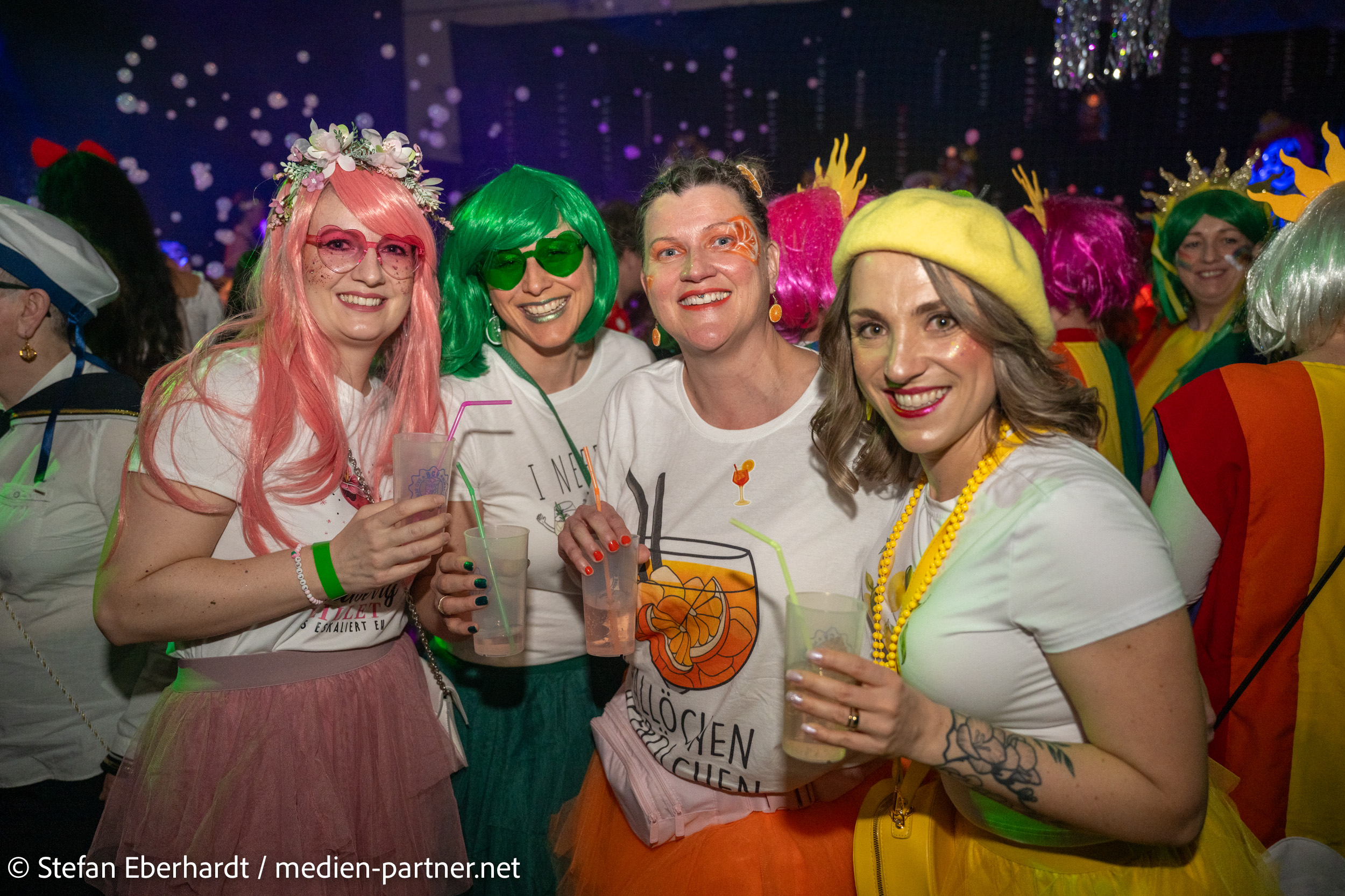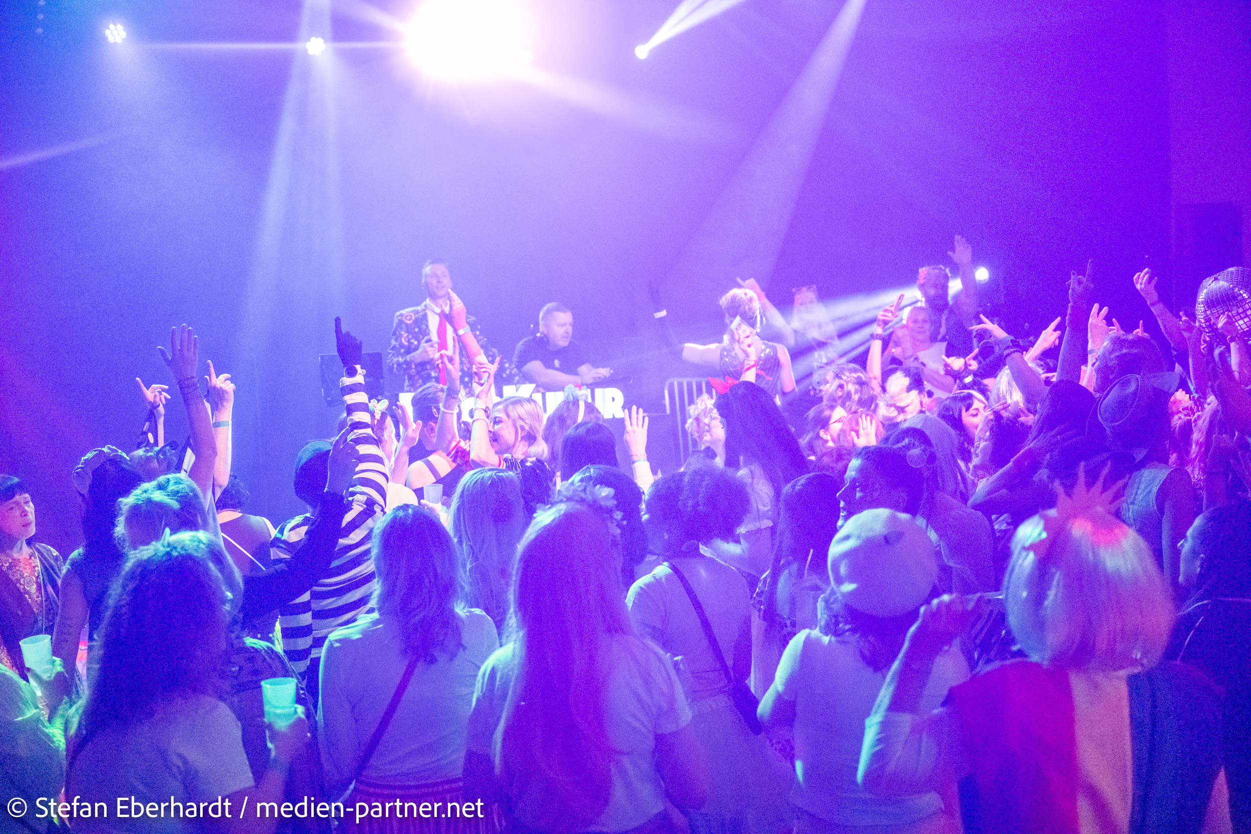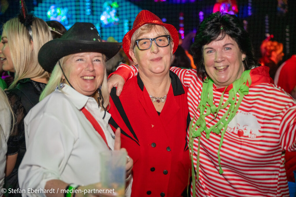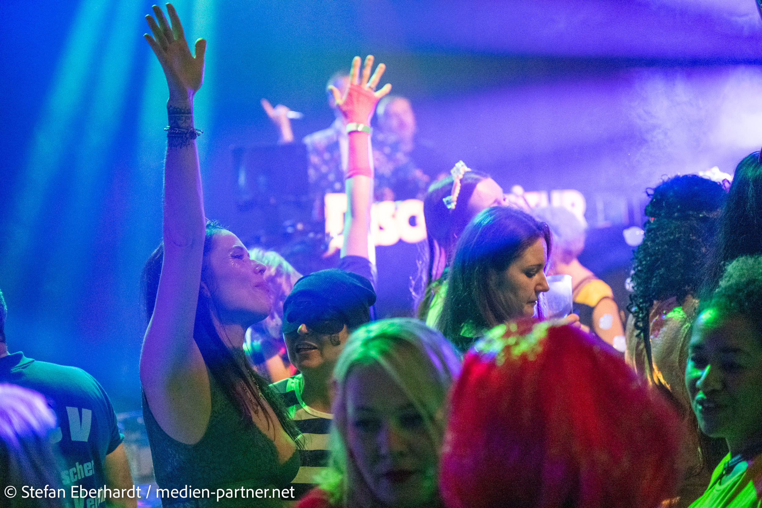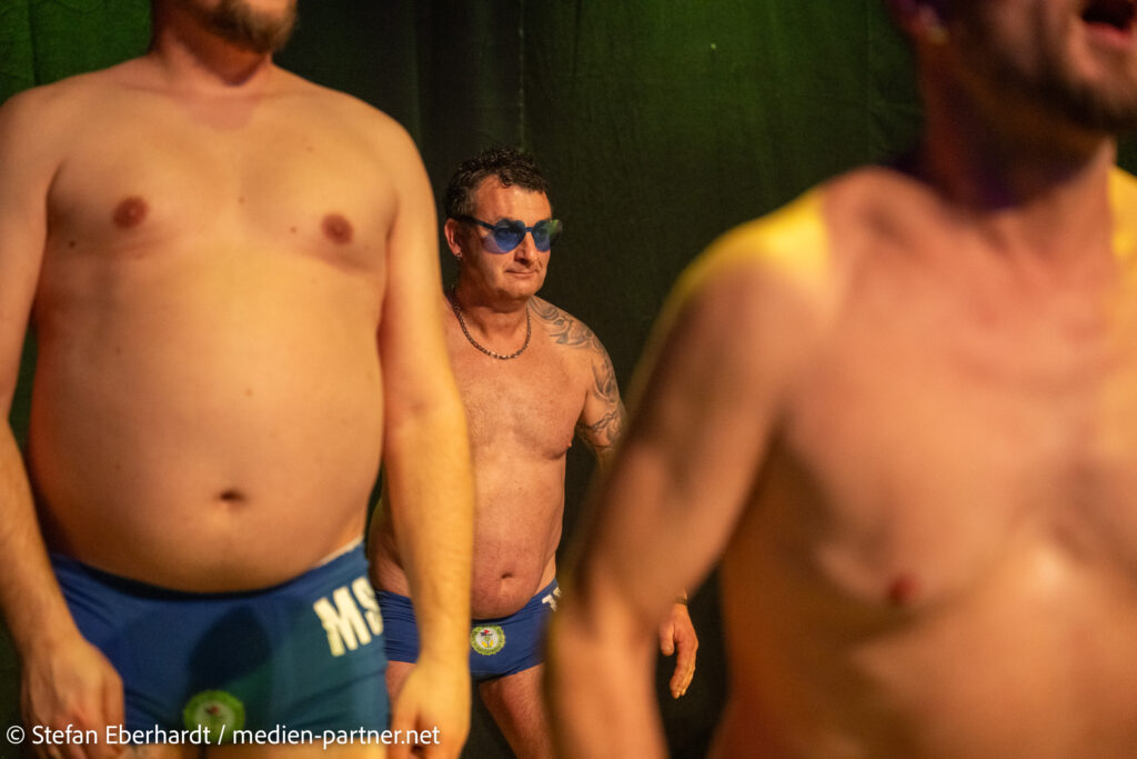 Ein optisches Highlight war zweifellos der Auftritt des Männerballetts, das in knappen Badehosen-Outfits die Bühne stürmte und die Damenwelt zu Begeisterungsstürmen hinriss. Damit die Energie im Saal konstant hoch blieb, heizte Holm den Gästen zwischendurch ordentlich ein und stimmte eine riesige Polonaise an, die sich durch die Reihen der bunt kostümierten Weiber zog.