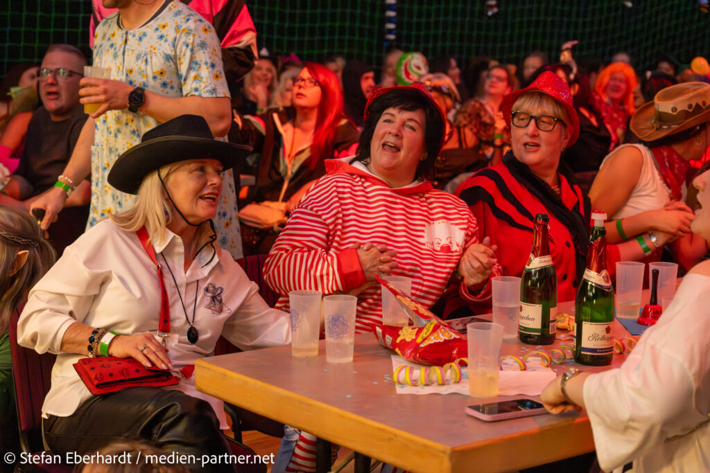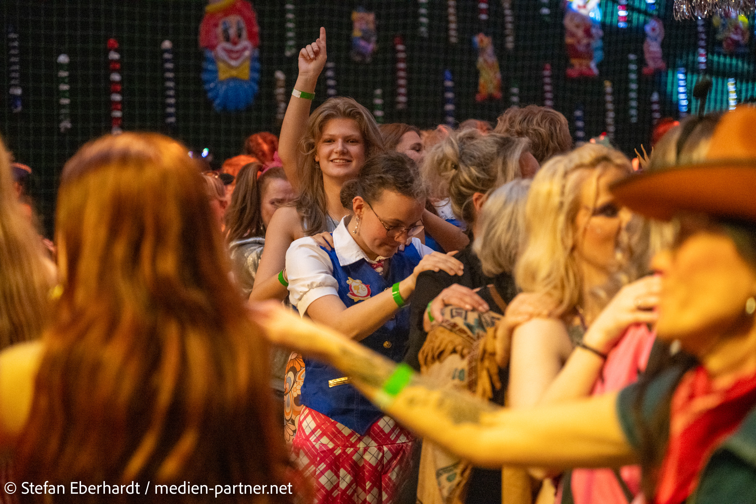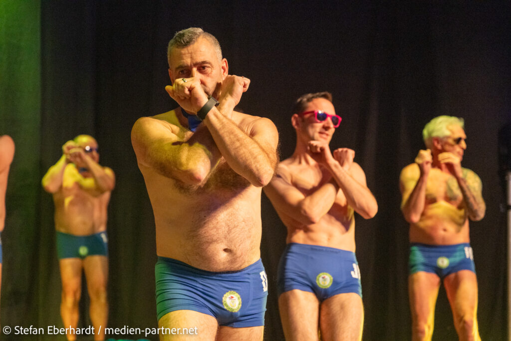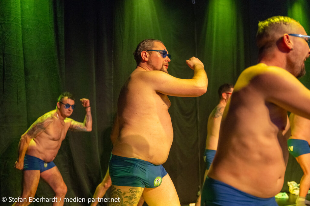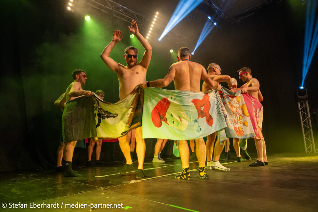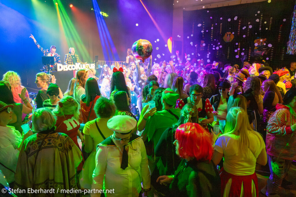Ein optisches Highlight war zweifellos der Auftritt des Männerballetts, das in knappen Badehosen-Outfits die Bühne stürmte und die Damenwelt zu Begeisterungsstürmen hinriss. Damit die Energie im Saal konstant hoch blieb, heizte Holm den Gästen zwischendurch ordentlich ein und stimmte eine riesige Polonaise an, die sich durch die Reihen der bunt kostümierten Weiber zog.