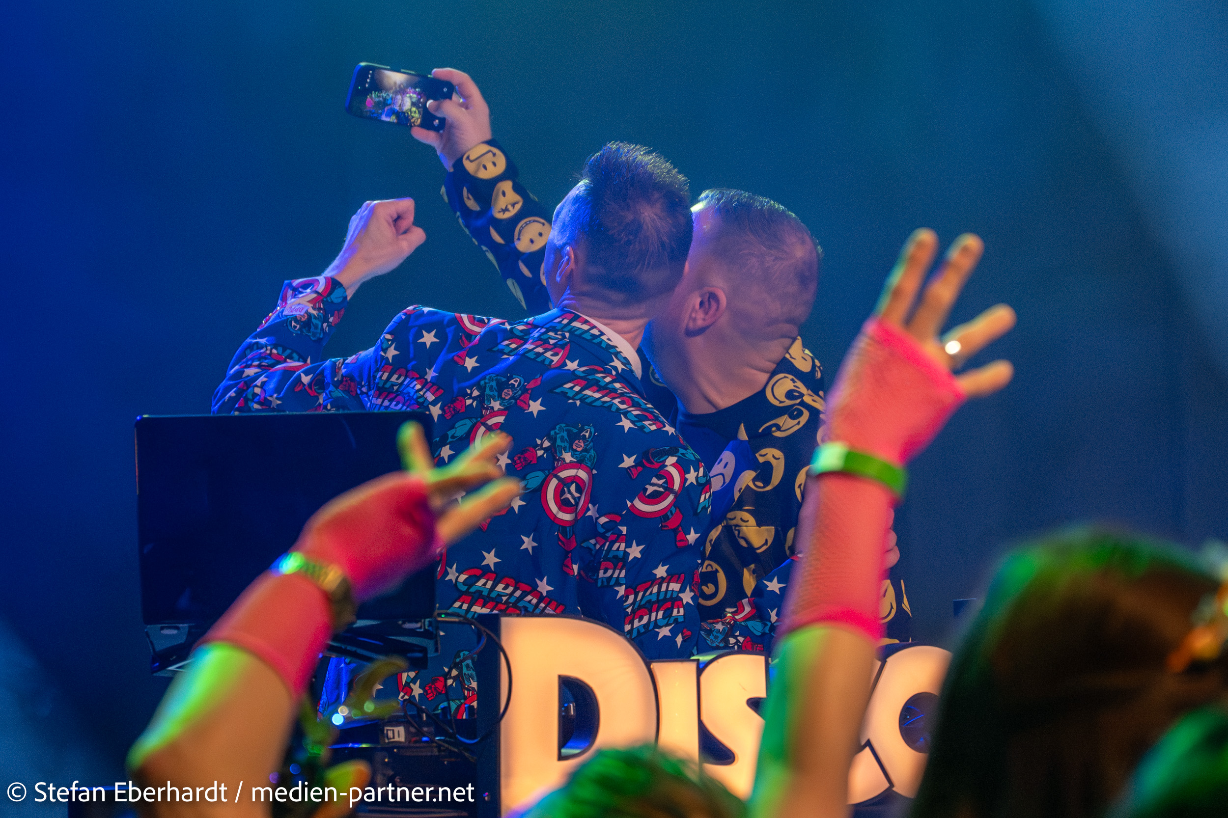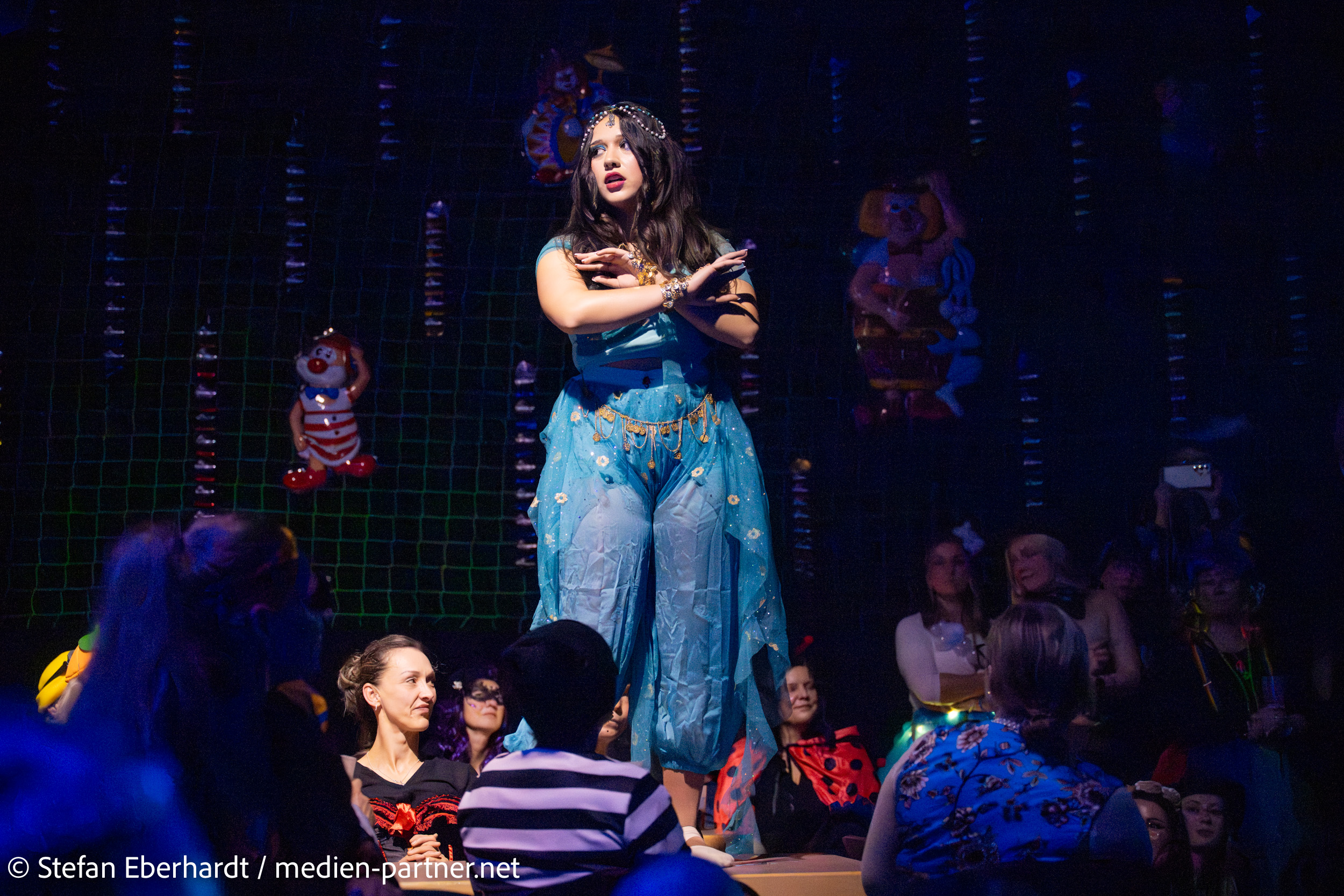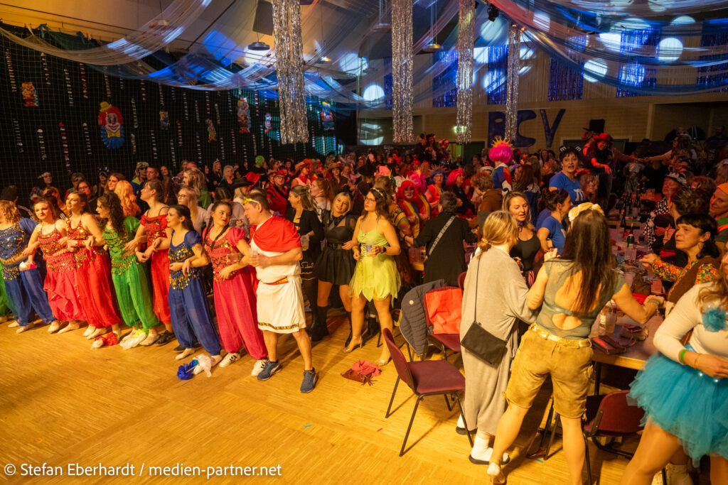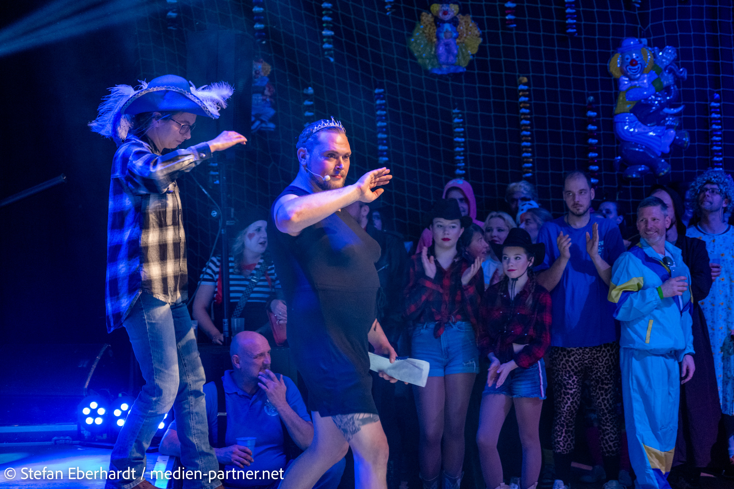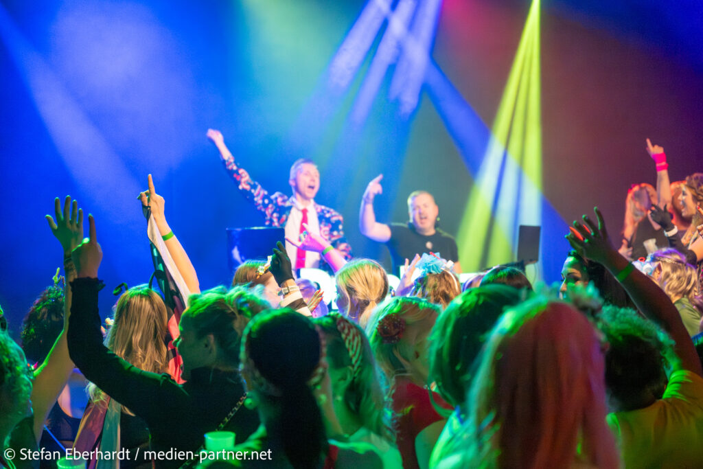 Ein optisches Highlight war zweifellos der Auftritt des Männerballetts, das in knappen Badehosen-Outfits die Bühne stürmte und die Damenwelt zu Begeisterungsstürmen hinriss. Damit die Energie im Saal konstant hoch blieb, heizte Holm den Gästen zwischendurch ordentlich ein und stimmte eine riesige Polonaise an, die sich durch die Reihen der bunt kostümierten Weiber zog.