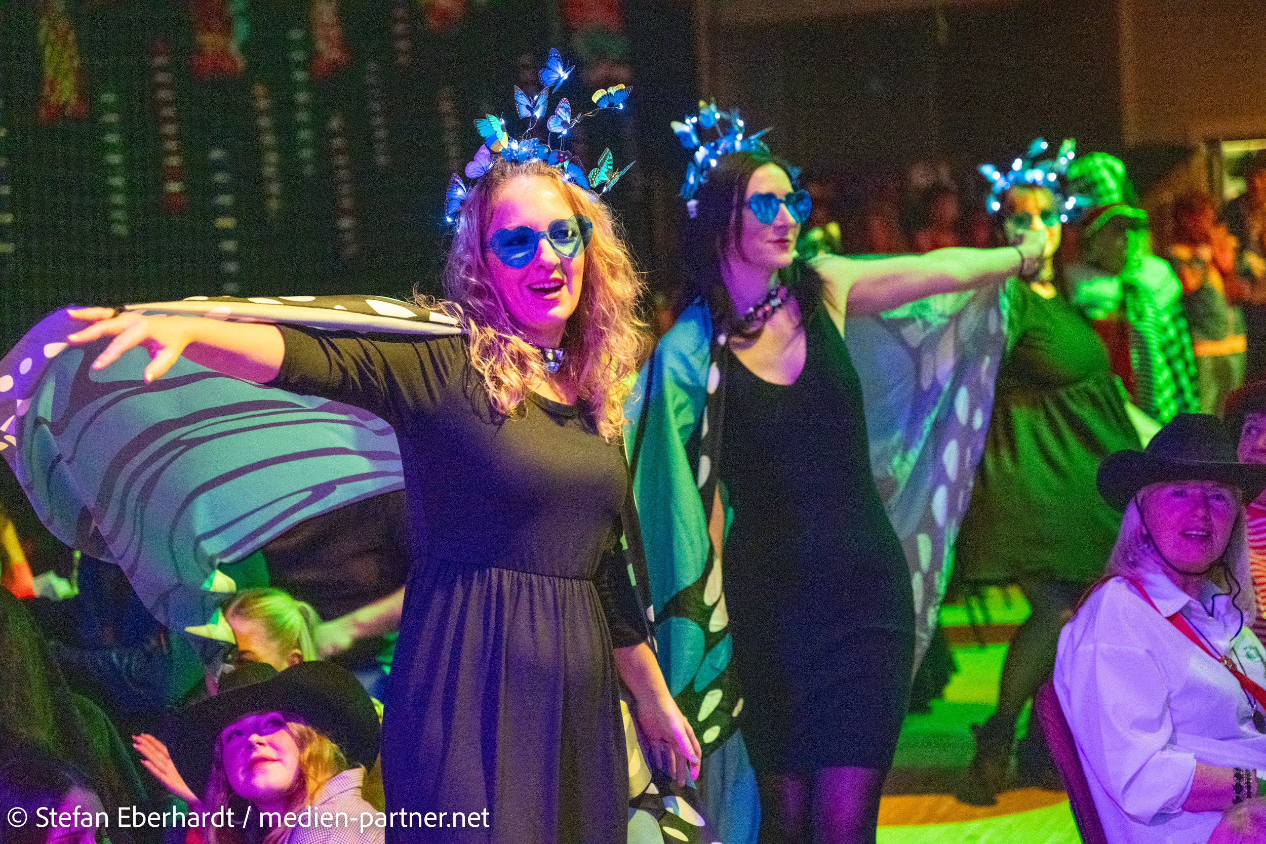 (Bad Berka) Wenn im Bad Berkaer Zeughaus die Stimmung ihren Siedepunkt erreicht, dann ist wieder Weiberfasching. Den Auftakt bildete eine beeindruckende Eröffnung, bei der die Aktiven als leuchtende Schmetterlinge verkleidet die Bühne in ein schillerndes Farbenmeer verwandelten.
