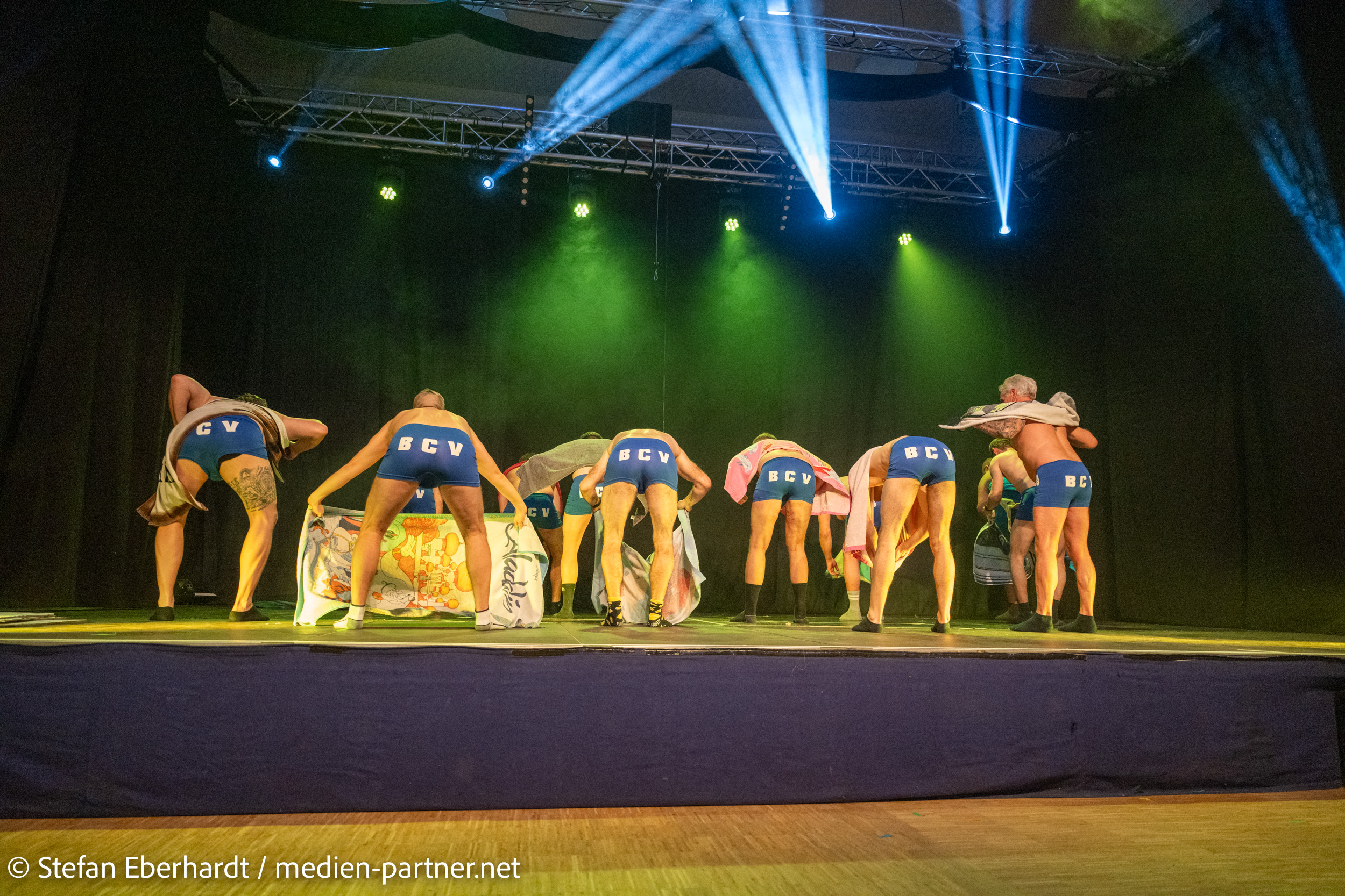 Den Rahmen für den Abend bildeten die gewohnt professionellen und tollen Tanzeinlagen der verschiedenen Tanzgruppen des Bad Berkaer Carneval Vereins (BCV). Zwischen den sportlichen Höchstleistungen der Garden sorgte der ein oder andere Sketch für schallendes Gelächter im Saal. Besonders die humorvolle Darstellung eines typischen Frauenabends, bei dem Kochsendungen im hochemotionalen Fußballstil kommentiert wurden, traf den Nerv des Publikums.