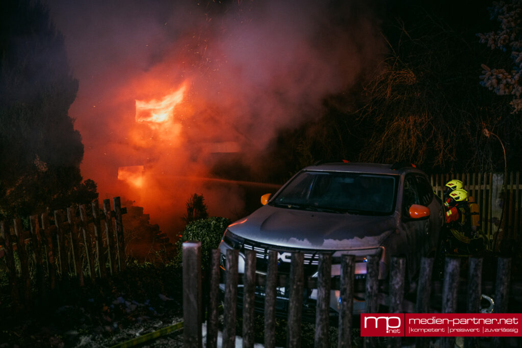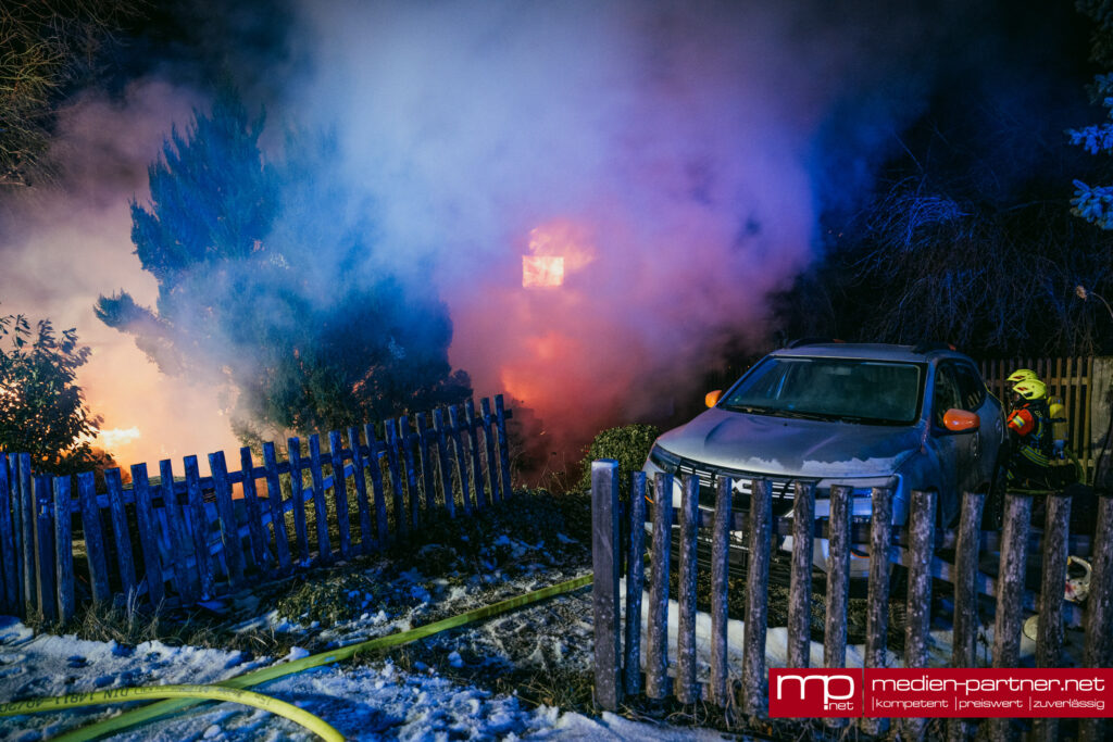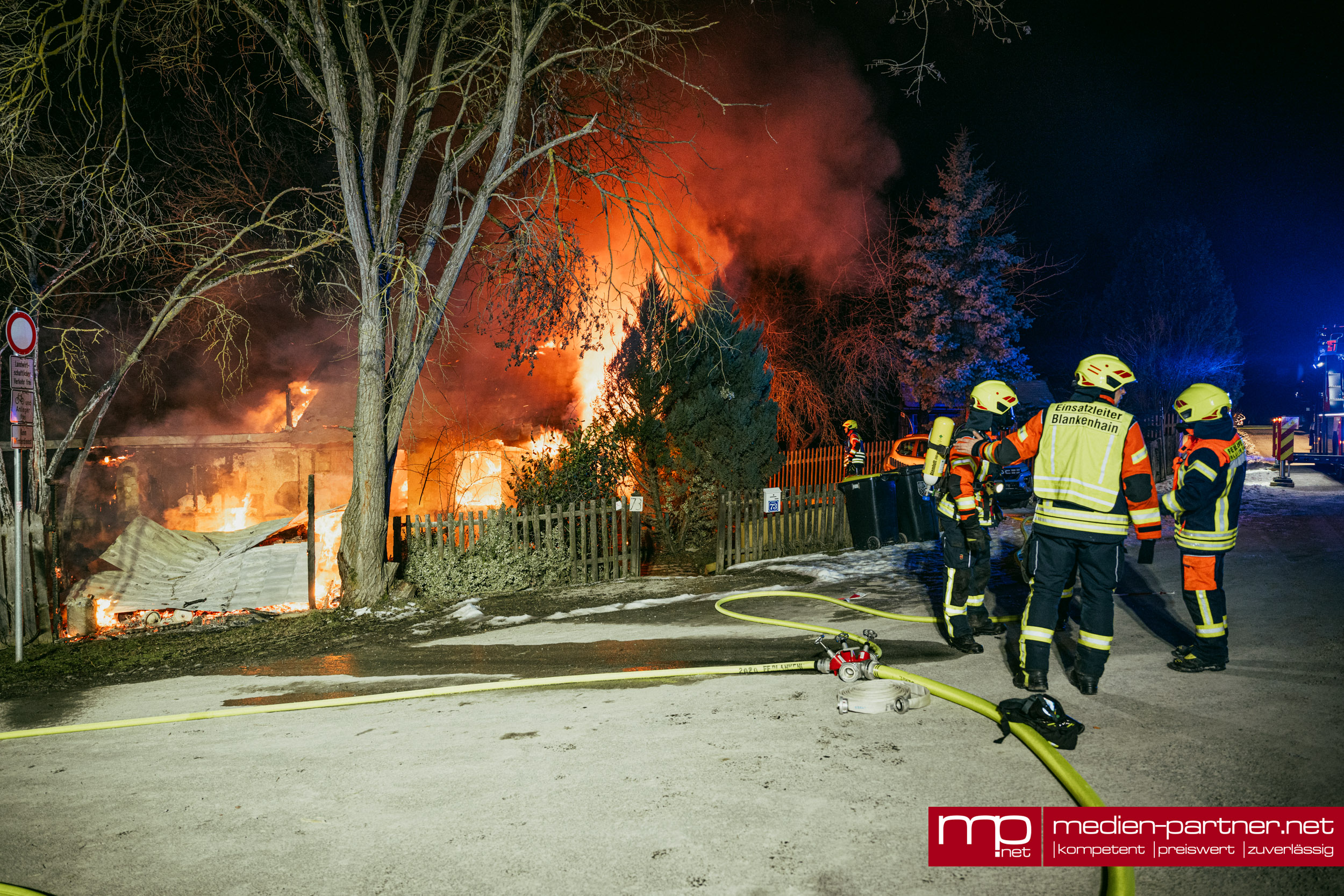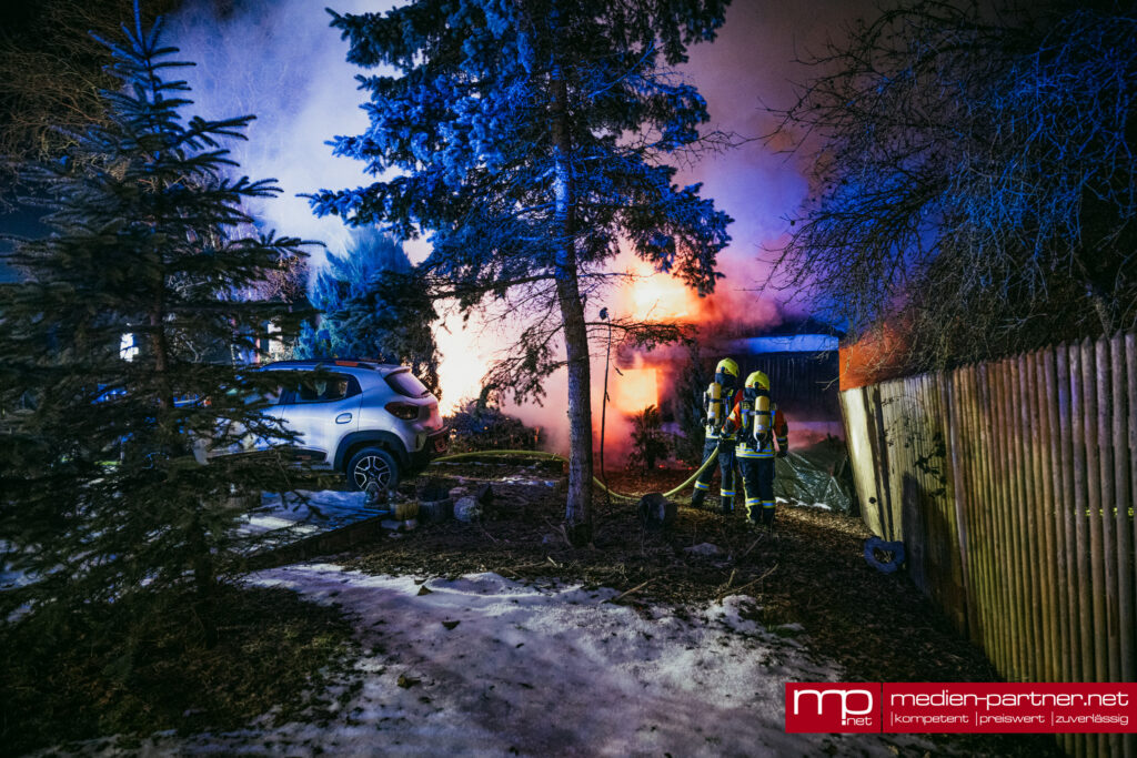 (Blankenhain / Saalborn) Ein nächtlicher Brand im Blankenhainer Ortsteil Saalborn nahm am frühen Freitagmorgen eine völlig unerwartete und dramatische Wendung. Gegen 1:38 Uhr wurden die Feuerwehren zu einer brennenden Gartenlaube alarmiert, die bereits bei Ankunft der ersten Kräfte in Vollbrand stand.