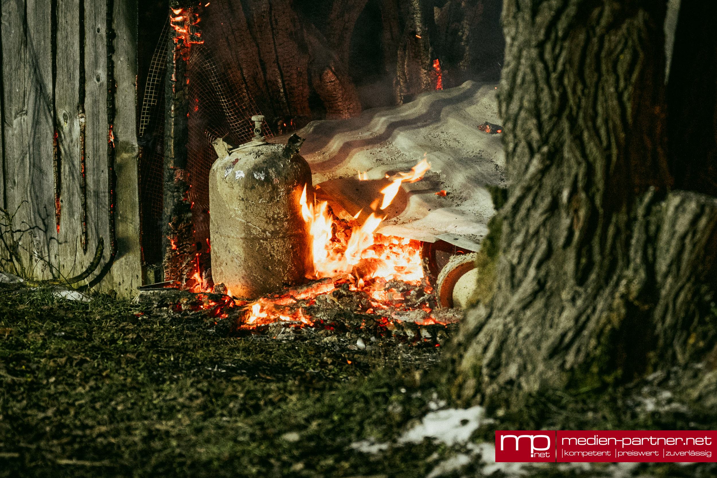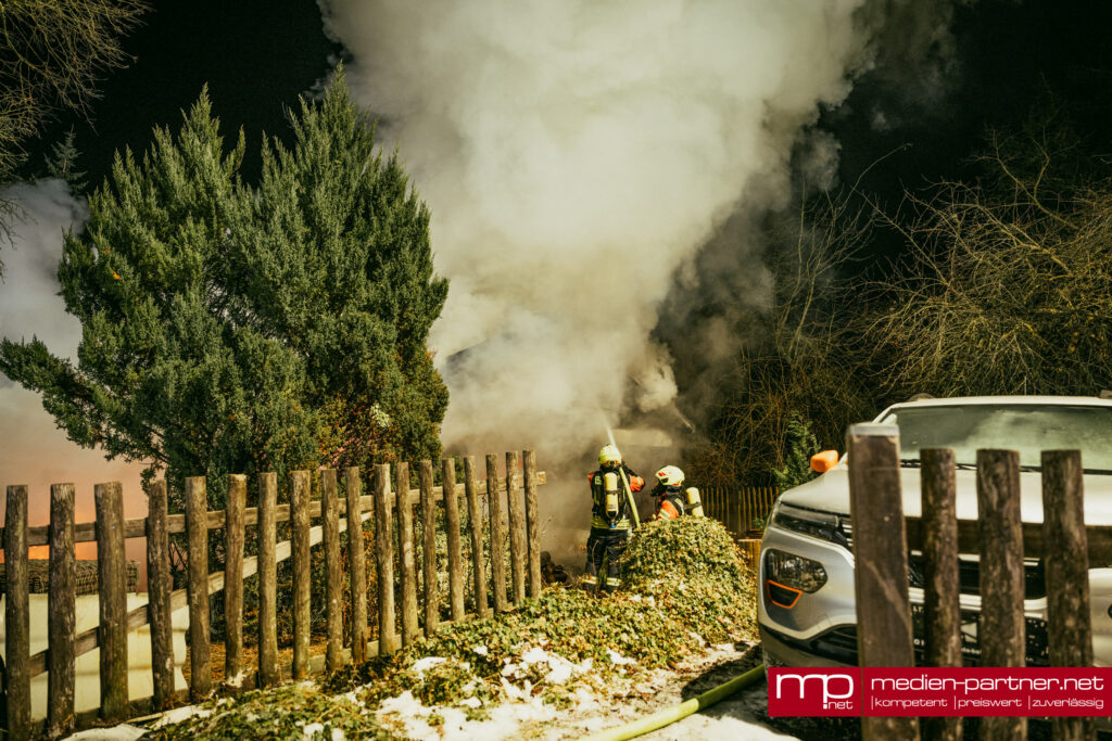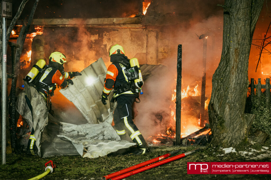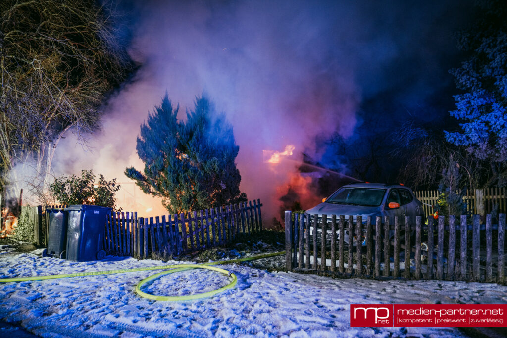 (Blankenhain / Saalborn) Ein nächtlicher Brand im Blankenhainer Ortsteil Saalborn nahm am frühen Freitagmorgen eine völlig unerwartete und dramatische Wendung. Gegen 1:38 Uhr wurden die Feuerwehren zu einer brennenden Gartenlaube alarmiert, die bereits bei Ankunft der ersten Kräfte in Vollbrand stand.