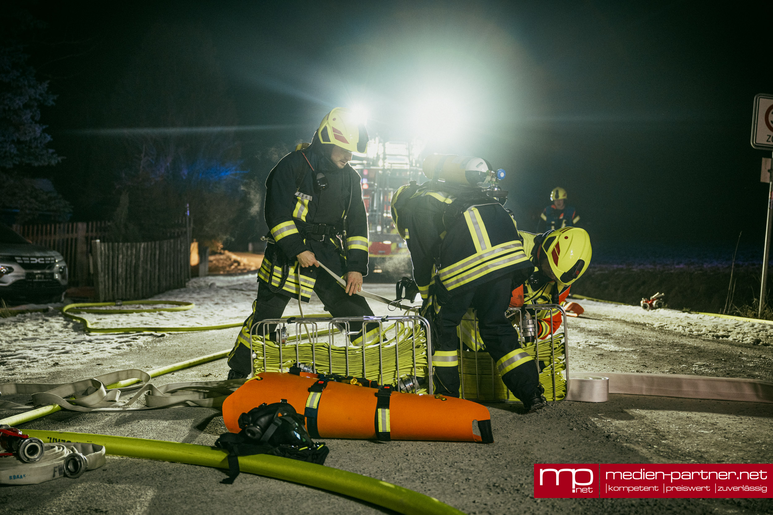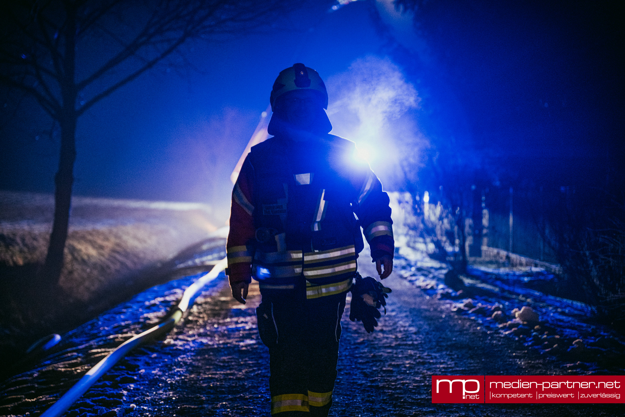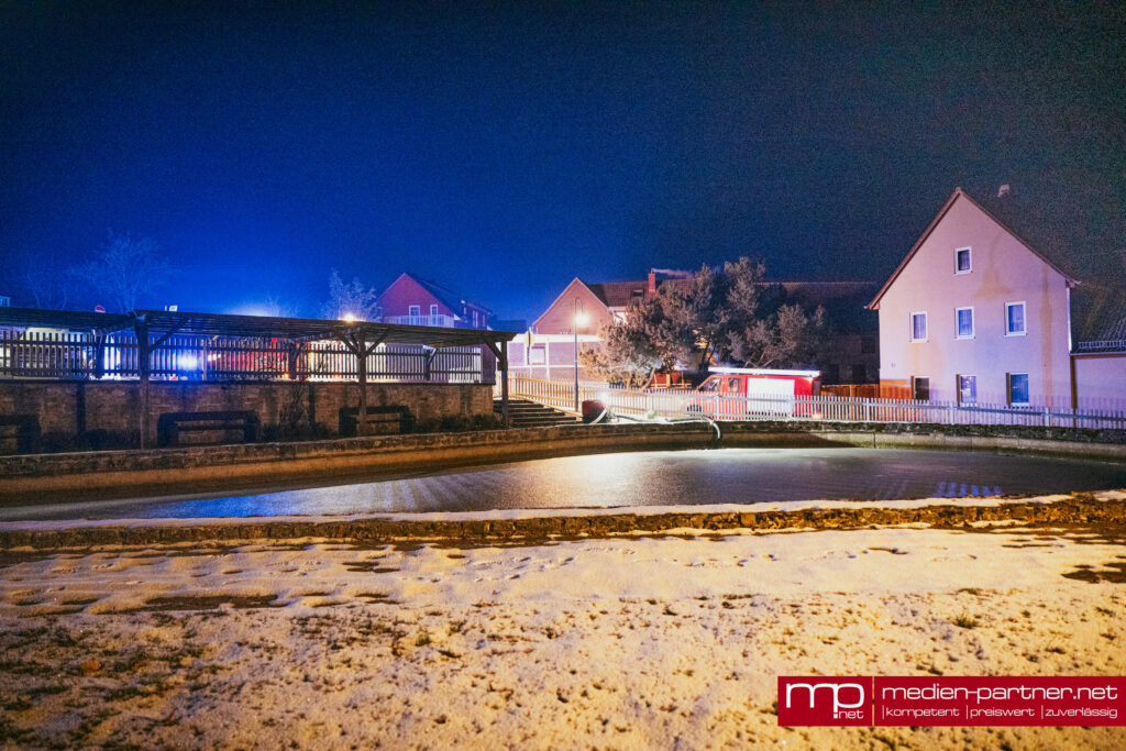 Die Situation vor Ort war von Beginn an kritisch. Da das Gebäude voll in Flammen stand, war ein Betreten für die Feuerwehrleute unmöglich. Die Einsatzkräfte mussten zudem unter zunehmend extremen Bedingungen arbeiten: Bei Temperaturen von bis zu -12 Grad in den Morgenstunden fror die Ausrüstung teilweise ein. „Wir müssen die Schlauchleitungen immer im Fluss halten, damit uns die Strahlrohre nicht einfrieren“, schilderte Einsatzleiter Marcus Köhler die technische Herausforderung. Die Wasserversorgung wurde mühsam über eine doppelte lange Wegestrecke vom Dorfteich aus aufgebaut.