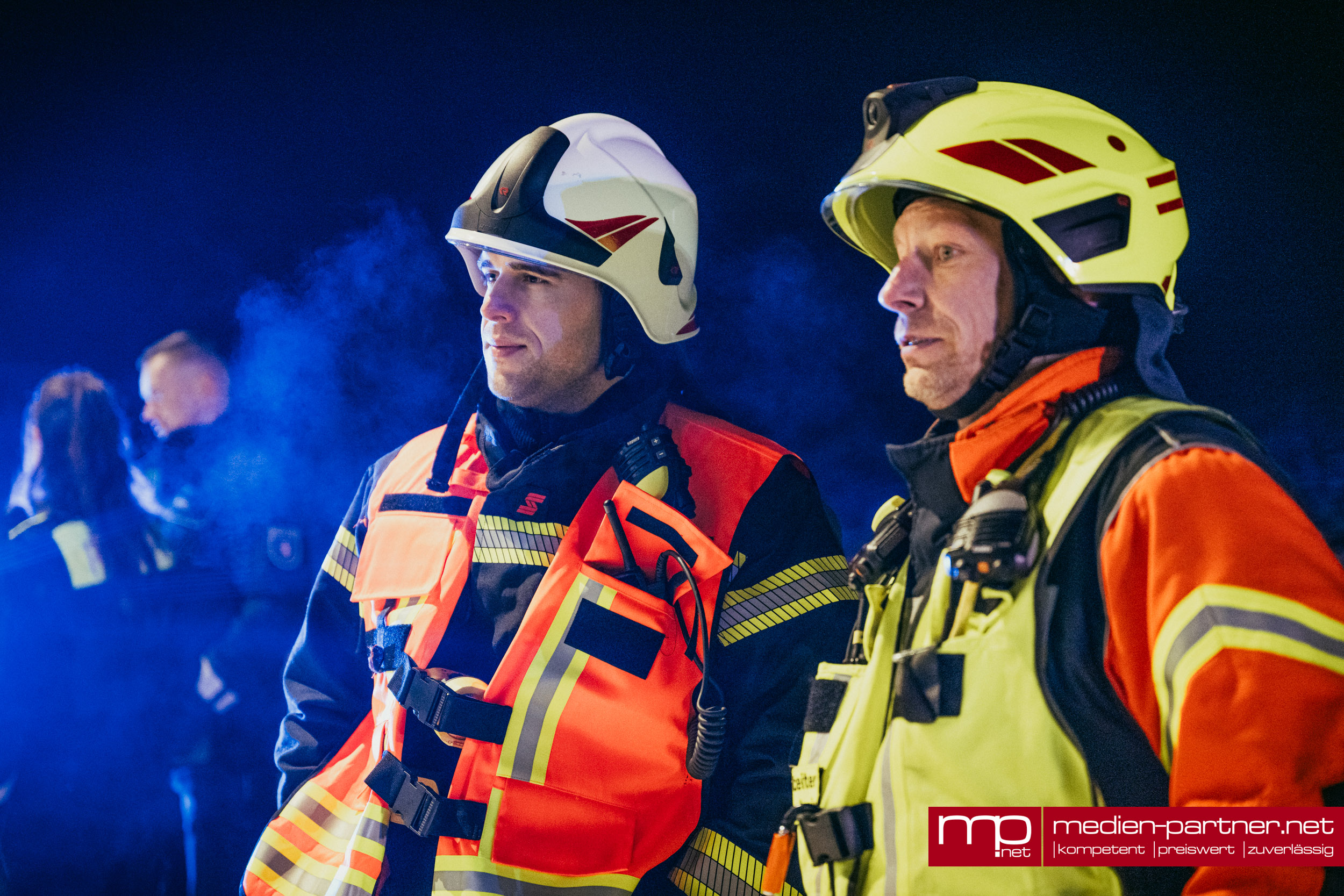 Gegen 5:00 Uhr morgens – etwa zweieinhalb Stunden nach Einsatzbeginn – kam es zur entscheidenden Wende. Im unmittelbaren Außenbereich des brennenden Hauses hörten die Einsatzkräfte plötzlich Stöhnen und Schreie. In einem Bereich, der zuvor bereits mehrfach mit Wärmebildkameras abgesucht worden war, wurde eine Person lebend, aber lebensbedrohlich verletzt und stark unterkühlt aufgefunden.