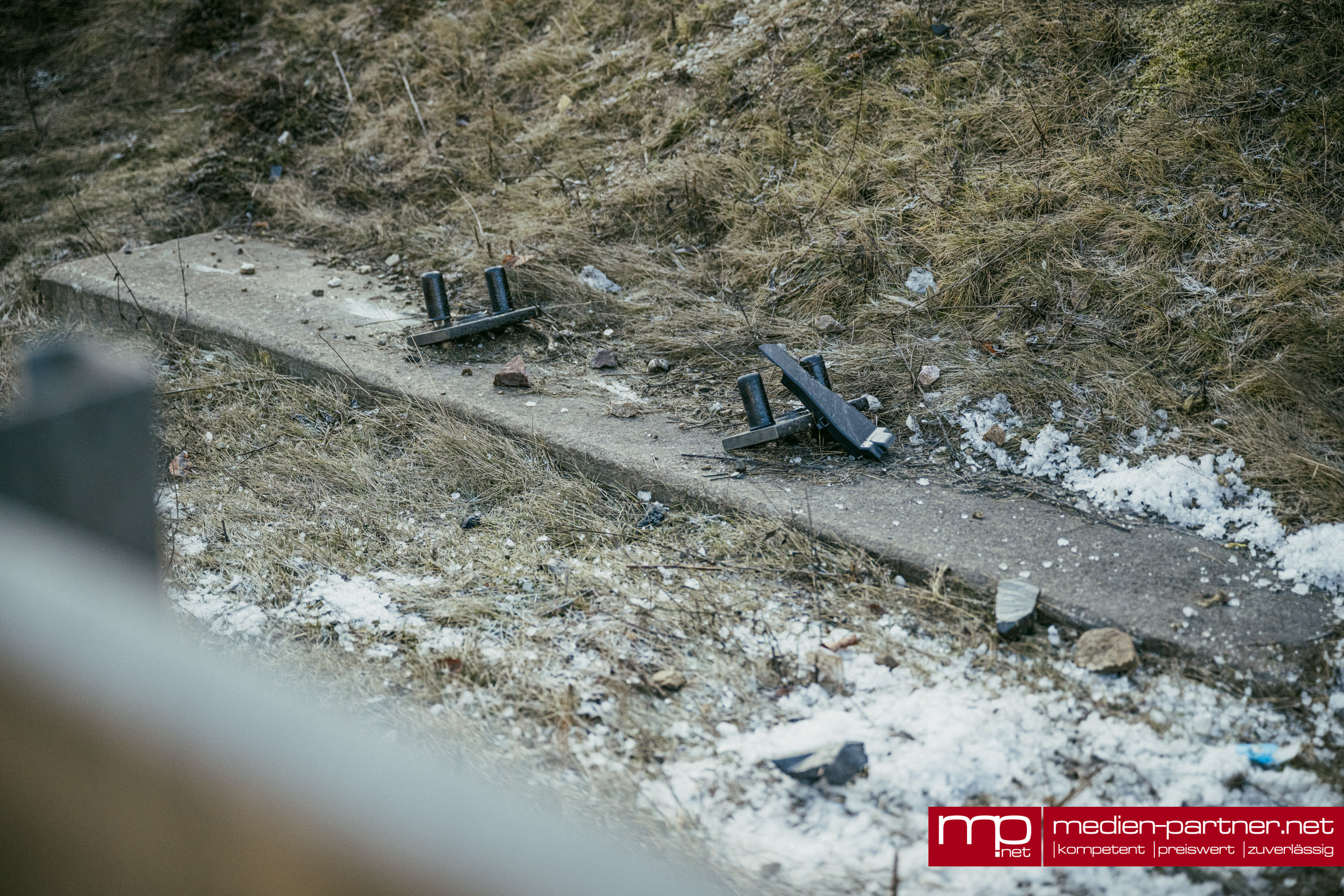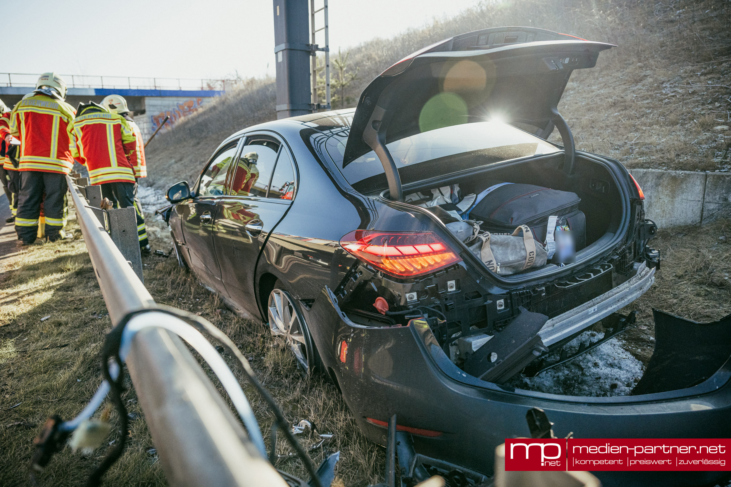 Am Mercedes entstand durch die mehrfachen Kollisionen Totalschaden; das Wrack musste durch einen Abschleppdienst geborgen werden. Auch die Schäden an der Bankette, der Beschilderung und dem Bewuchs sind erheblich.