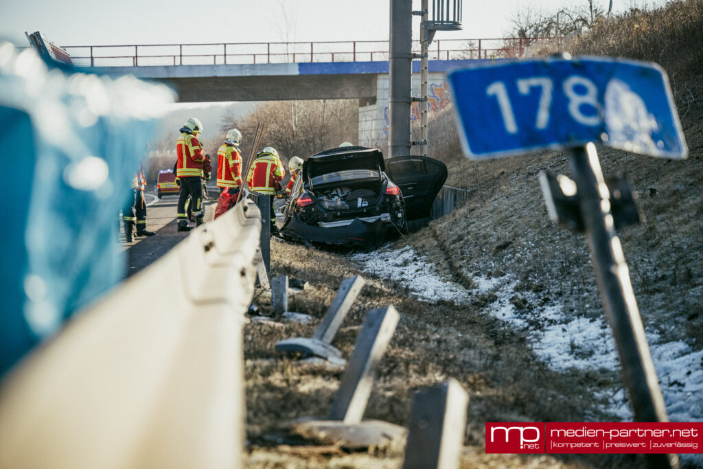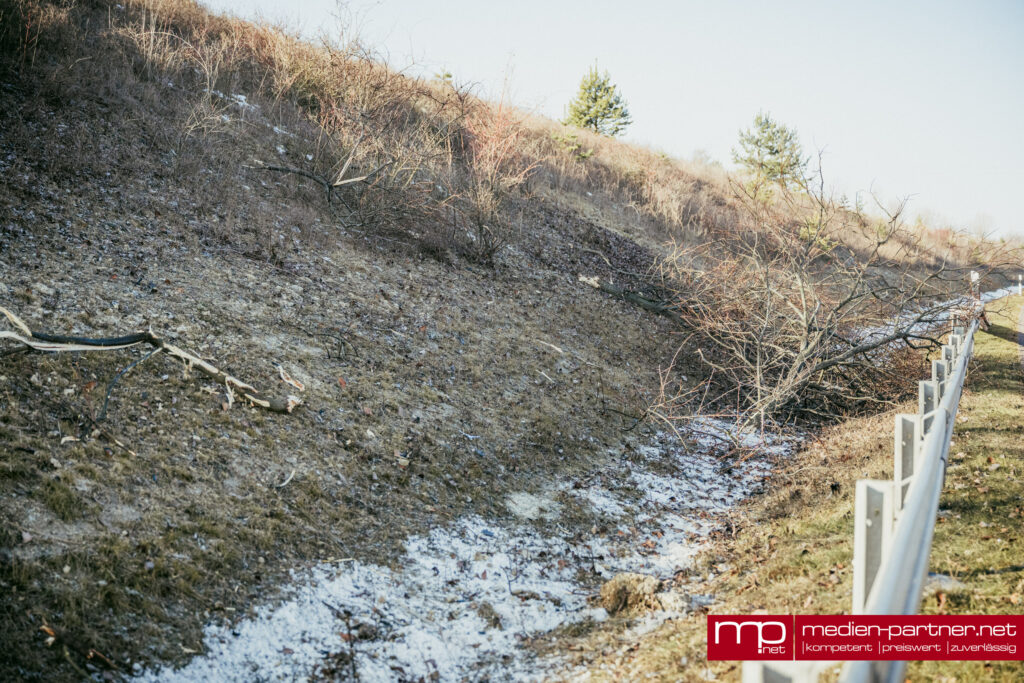 Nach ersten Erkenntnissen der Autobahnpolizei war womöglich Sekundenschlaf die Ursache für das Unglück. Der Fahrer eines Mercedes-Benz verlor die Kontrolle über sein Fahrzeug und kam nach rechts von der Fahrbahn ab. Was folgte, war eine rund 220 Meter lange Irrfahrt abseits der Piste. Der Wagen durchfuhr zunächst den Straßengraben und pflügte die Böschung entlang.