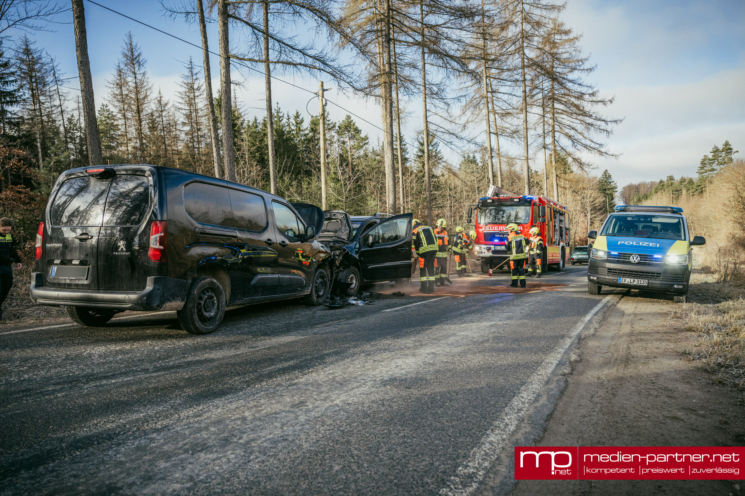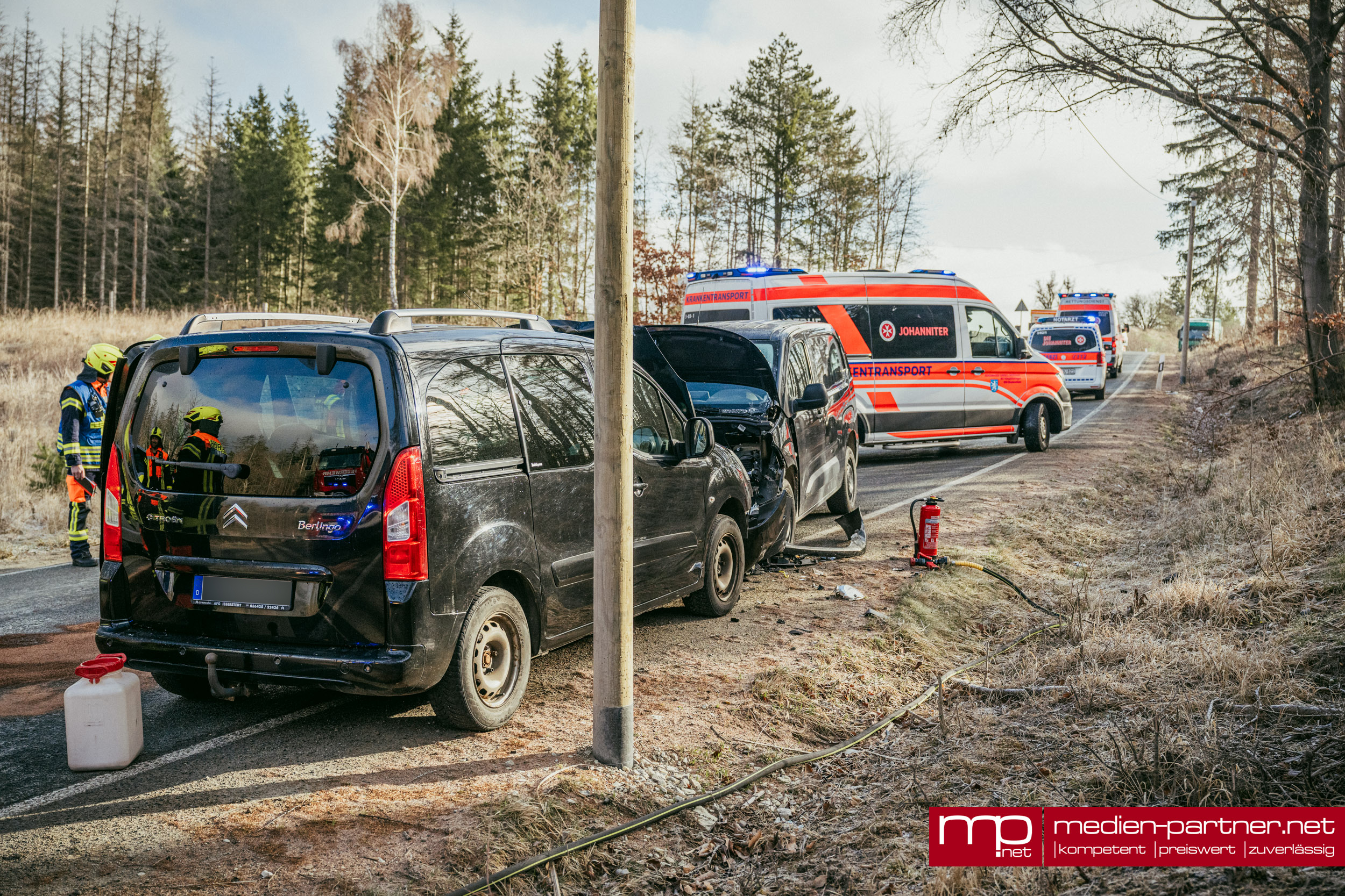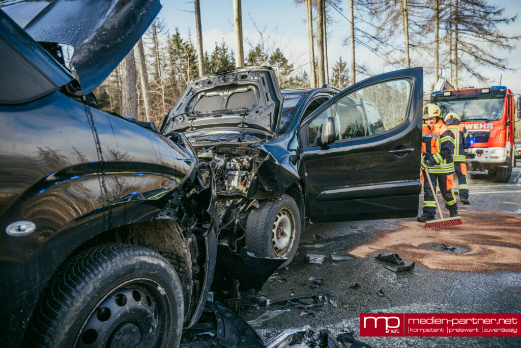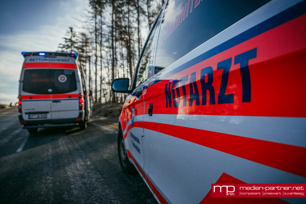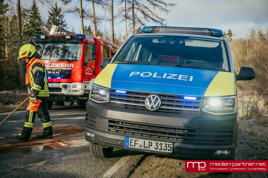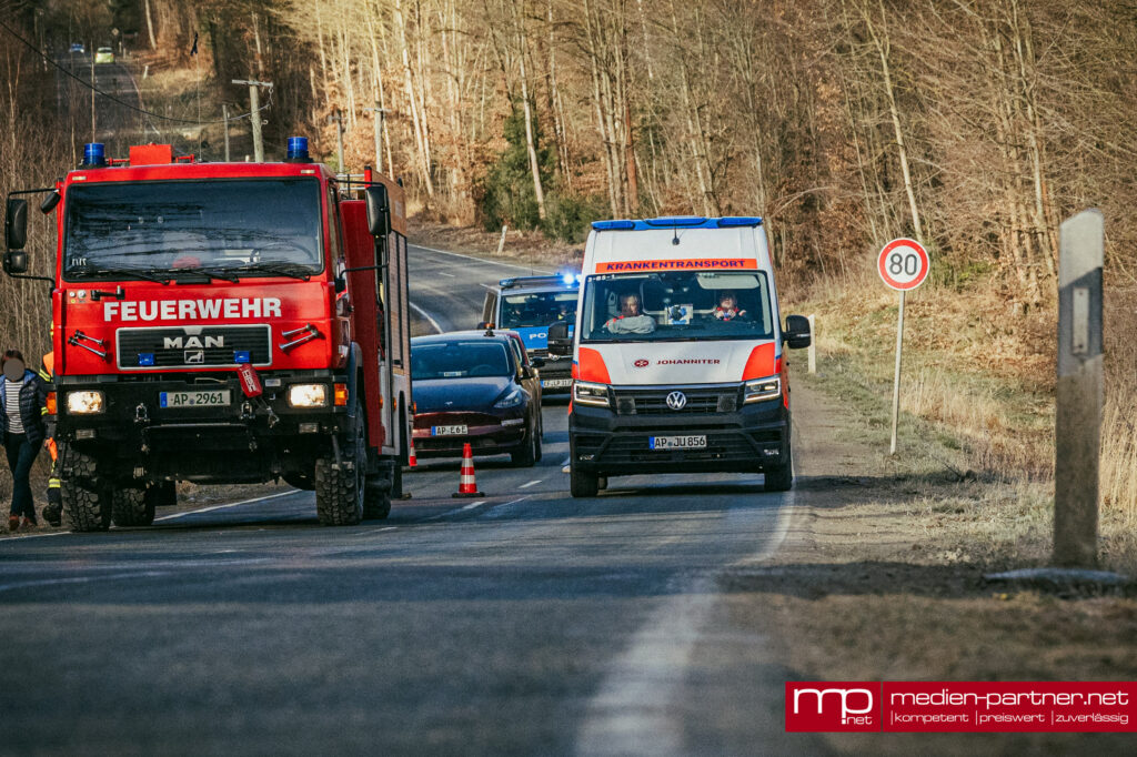 (Kleinlohma/Blankenhain) Ein schwerer Verkehrsunfall forderte am Freitagmorgen den Einsatz der Rettungskräfte auf der Verbindungsstraße zwischen Blankenhain und Kleinlohma. Gegen 08:05 Uhr kam es im Bereich des dortigen Steinbruchs zu einem heftigen Frontalzusammenstoß zweier Fahrzeuge, bei dem ein Beteiligter nach bisherigem Kenntnisstand verletzt wurde.