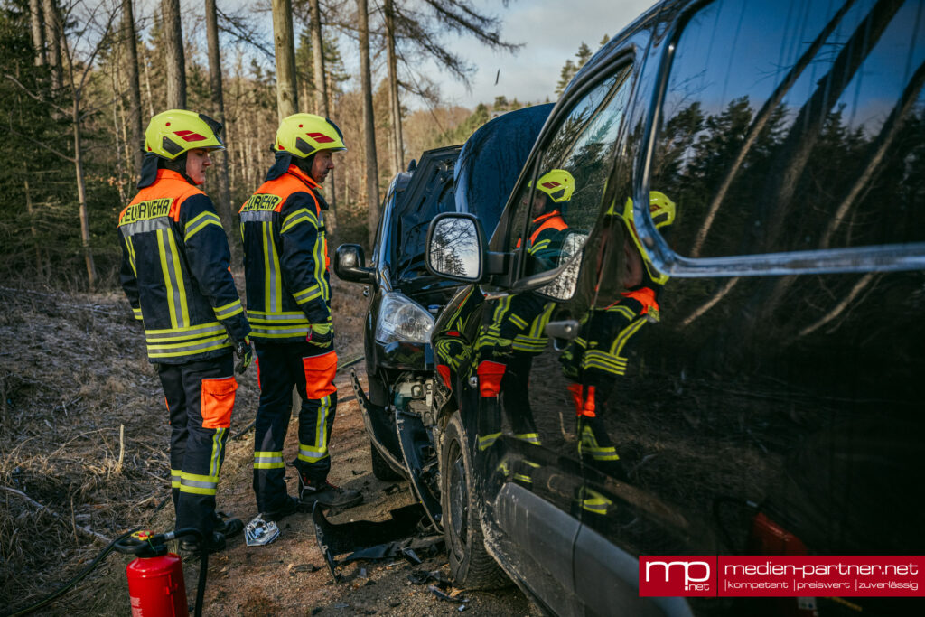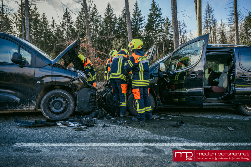 Durch dieses Manöver geriet der Kastenwagen auf der abschüssigen Fahrbahn in einer Linkskurve in den Gegenverkehr und prallte dort frontal mit einem entgegenkommenden Citroën zusammen.